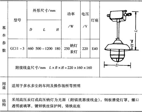 表9-55 GC11-3新光源防水防尘灯