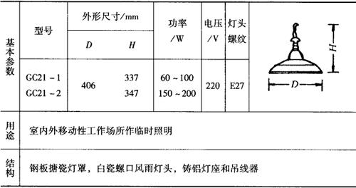 表9-56 GC21配照型挂灯