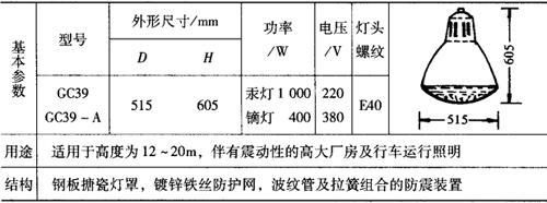 表9-59 GC39深照型防震灯