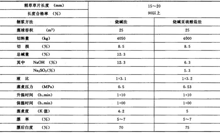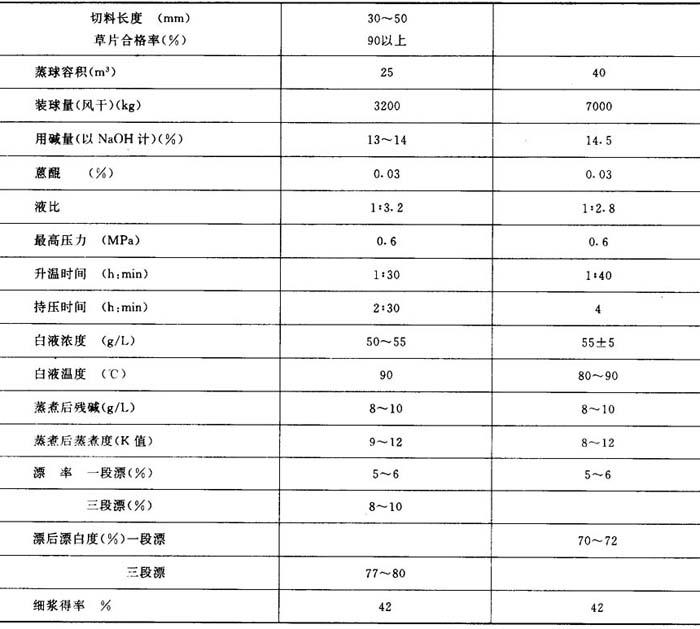 表5-3-16 漂白麦草浆用于生产薄页纸