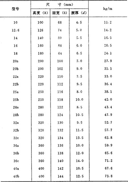 工字钢理论重量