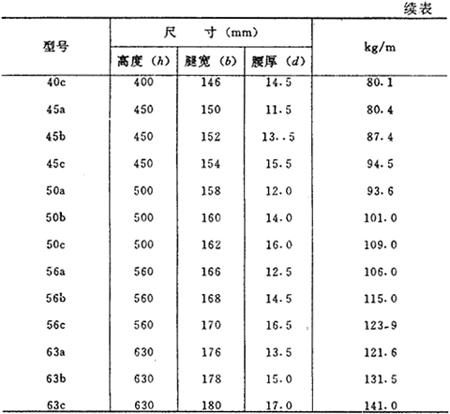 注:工字钢尺寸符号如图7-4所示。