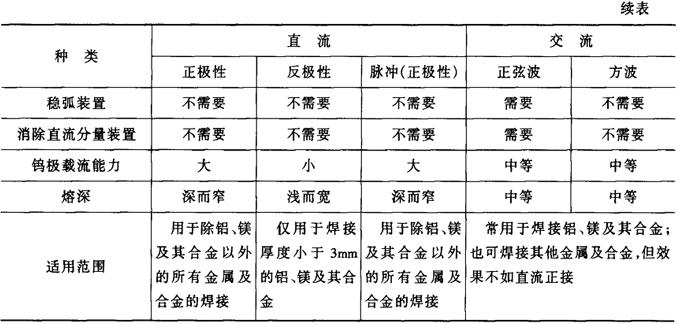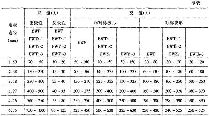 释义 | 工艺参数的选择 TIG焊的工艺参数主要有:电流的种类及极性、焊接电流的大小、焊接速度、钨极直径及形状、保护气体流量等。 1.电流的种类及极性 不同的电流种类及极性具有不同的工艺特点,适用于不同材料的焊接。因此应首先根据工件的材料选择电流的种类及极性,如表1-6-26所示。 表1-6-26 不同电流类型及极性接法的特点及应用范围[6] 2.电流大小 焊接电流的大小决定熔深,因此,在选定了电流的种类及极性后,要根据板厚来选择电流的大小,此外还要适当考虑接头的形式、焊接位置等的影响。 3.焊接速度 焊接速度影响焊接线能量,因此影响熔深及熔宽。通常根据板厚来选择焊接速度,而且为了保证获得良好的焊缝成形,焊接速度应与焊接电流、预热温度及保护气流量适当匹配。焊接速度太快时,易出现未焊透、咬边等缺陷;而焊接速度太慢时会出现焊缝太宽、烧穿等缺陷。 4.钨极的直径及端部形状 钨极的直径及形状是重要的TIG焊接参数之一。通常根据电流的种类、极性及大小来选择。 钨极直径的选择原则是,在保证钨极许用电流大于所用焊接电流的前提下,尽量选用直径较小的钨极。钨极的许用电流决定于钨极直径、电流的种类及极性。钨极直径越大,其许用电流越大。直流正接时,钨极载流能力最大,直流反接时载流能力最小,交流时载流能力居于直流正接与反接之间。交流焊时,电流的波形对载流能力也具有重要的影响。表1-6-27给出了不同条件下各种钨极的许用电流。 表1-6-27 常用电极的许用电流[7] 注:①所有数据均为纯氩气做保护气体时的数据;②一般不采用。 电极的端部形状对焊接过程稳定性及焊缝成形具有重要影响,通常应根据电流的种类、极性及大小来选择,表1-6-28给出了钨极各种端部形状所适用的范围及其对电弧稳定性及焊缝成形的影响。 表1-6-28 电极的不同端头形状的适用范围及其对电弧稳定性及焊缝成形的影响[8] 脉冲TIG焊时,由于在基值电流期间钨极受到冷却,所以直径相同的钨极之许用电流值明显提高,如表1-6-29所示。 表1-6-29 脉冲TIG焊推荐用的钨极端部形状尺寸及许用电流[7](直流正接) 5.喷嘴孔径及氩气流量 喷嘴孔径越大,保护区越大,但太大时,熔池及电弧的可观察性变差。对于一定的喷嘴孔径,保护气流量有一个合适的范围,流量太小时,气体挺度差,保护效果不好;流量太大时,气流层中出现紊流,空气易卷入,保护效果也不好。喷嘴孔径及氩气流量通常根据电流的种类、极性及大小来选择,如表1-6-30所示。 表1-6-30 喷嘴孔径及氩气流量的选择[3] 6.钨极伸出长度 通常将露在喷嘴外面的钨极长度叫做钨极的伸出长度。伸出长度过大时,钨极易过热,且保护效果差;而伸出长度太小时,喷嘴易过热。因此钨极伸出长度必须保持一适当的值。对接焊时,钨极的伸出长度一般保持在5~6mm;焊接T形焊缝时,钨极的伸出长度最好为7~8mm。 7.喷嘴离工件的距离 喷嘴离工件的距离要与钨极伸出长度相匹配。一般应控制在8~14mm之间。距离过小时,影响工人的视线,且易导致钨极与熔池的接触,使焊缝夹钨并降低钨极寿命;距离过大时,保护效果差,电弧不稳定。 |