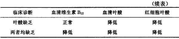 释义 | 巨幼红细胞性贫血 【释义】: 巨幼细胞贫血(megaloblastic anemia),简称巨幼贫,系细胞脱氧核糖核酸(DNA)合成障碍所致的一组贫血。其特点为骨髓及外周血细胞呈特殊巨型改变的大细胞性贫血。主要原因是叶酸和(或)维生素B12缺乏,故称为营养性巨幼细胞贫血。 【诊断】: 1.病因与分类 (1)缺乏叶酸 绿色蔬菜及水果中,叶酸含量丰富。若食物烹调不当,致叶酸损耗过多;小儿生长发育期、妊娠及哺乳期,叶酸需要量增多;老人饮食不佳,而人体内叶酸储备并不丰富,都有可能致叶酸缺乏。此外某些小肠疾病如炎症、淋巴瘤、空肠结肠瘘以及应用某些药物,都可影响叶酸代谢及利用等。 (2)缺乏维生素B12 动物性食物中有多类维生素B12,人体内储备亦相当充分,可供数年之需,故食入不足者少。但在贫困地区、生活水平低下、小儿发育生长及哺乳期需要量增多,可导致摄入不足。胃肠道或胰腺疾病,维生素B12吸收不良,是巨幼贫发生的重要原因。 (3)缺乏内因子 分为原发性和继发性两种,原发性见于恶性贫血,与自身免疫产生内因子抗体有关;继发性见于萎缩性胃炎,全胃或胃大部切除术后。 2.临床表现 (1)症状 1)贫血 起病缓慢,逐渐加重。如胃切除后可数年方出现,但妊娠妇女可发病较急。多表现为头晕疲乏、心悸气促、活动后加剧伴面色苍白。 2)消化道症状 常见消化不良,食欲不振,可有腹泻,约半数病例发生舌炎。 3)神经系统病变 主要是缺乏维生素B12所致。初起感全身乏力,手足有对称性针刺或蚁行感,或手套、袜套症状,逐渐出现感觉减退。还可有脑部症状:嗜睡、狂躁、妄想、抑郁,小儿可有智力发育迟滞等。 (2)体征 可见贫血貌。心脏扩大,出现贫血所致杂音,亦可见黄疸。舌呈紫红,烧灼痛,或有溃疡,严重者涉及整个口腔或咽部。少数有脊髓后侧索及周围神经受损的症状,进展缓慢。神经系统病变可单独出现,或发生在贫血之前。 3.辅助检查 (1)血象 大细胞性贫血。红细胞计数明显减少,血红蛋白下降相对较轻。红细胞指数:MCV大于100fl,MCHC大于30%。多数红细胞呈大卵圆形。白细胞和血小板亦常减少,中性粒细胞分叶过多(5叶者>5%或6叶者>1%)。 (2)骨髓象 骨髓明显增生,红系呈典型巨幼红细胞生成,巨幼RBC>10%。粒细胞系统及巨核细胞系统亦有巨型变,特别是晚幼粒细胞改变明显,核质疏松、肿胀。巨核细胞有核分叶过多、血小板生成障碍。 (3)血清叶酸或维生素B12测定 血清叶酸测定(放射免疫法)<6.91nmol/L(<3ng/ml),红细胞叶酸测定(放疫法)<227nmol/L(<l00ng/ml)。血清维生素B12测定(放疫法)<74~103pmol/L(<100~140ng/ml)。见表6-3。 表6-3 叶酸及维生素B12缺乏的诊断 (4)维生素B12吸收试验(Schilling试验) 可鉴别维生素B12缺乏的原因。先给患者口服57Co或58Co标记维生素B120.5~1μg,1~2小时后,予维生素B121000μg肌注,收集24小时尿,正常人标记维生素B12排出量为8%~10%以上;维生素B12吸收不良者常低于7%。在一周之后再做第二次试验,并同时口服内因子60mg。共作2次,如2次试验排泄量均减少,则为吸收不良;若第1次结果低下,而第2次结果正常者,则示内因子缺乏。 (5)3H标记叶酸吸收试验 给予饱和剂量的叶酸,一般用叶酸15mg注射,然后口服3H标记叶酸40μg/kg,收集24小时尿。正常人应当排除28%以上,叶酸缺乏者排泄量减少。 (6)血清高半胱氨酸水平增高(正常为7~22μmol/L)。 (7)脱氧尿嘧啶核苷抑制试验 患者试验结果异常,并可被叶酸和维生素B12所纠正。此试验常用在尚无贫血表现之患者。 (8)其他 血清LDH、胆红素和尿中尿胆原水平升高,与无效性红细胞生成有关。LDH同工酶测定有助于鉴别巨幼红细胞性贫血和其他类型贫血。 4.鉴别诊断 本病需与非叶酸或维生素B12缺乏所致巨幼贫、先天性巨幼贫、红血病、骨髓异常增生综合征(RA型)以及维生素B1反应性巨幼细胞贫血等鉴别。 【治疗】: 1.基本原则 (1)营养知识教育及改善营养情况 改善烹调习惯,纠正偏食。对小儿生长发育期、妊娠及哺乳期,注意摄入。 (2)治疗原发病情 有小肠疾病如炎症、淋巴瘤、空肠结肠瘘等胃肠道疾病或胰腺疾病者,要积极治疗原发疾病。 (3)补充缺乏的物质 应进行多种必要辅助检查,包括测定血清叶酸或维生素B12水平,了解病情的情况下,进行所缺物质的补充。 2.叶酸 叶酸5mg,每日3次,至贫血纠正,一般不需维持治疗。不能口服者,可用甲酰四氢叶酸肌内注射。营养行者,一般以缺乏叶酸多见。可每日给予叶酸10~30mg,分次口服,直至症状完全消失。恢复期将剂量递减到每日5~10mg。 恶性贫血有神经系统症状者,不可单独使用,必须同时加用维生素B12,因单独使用叶酸,会消耗体内维生素B12,可出现或加重神经系统症状。 3.维生素B12 除少数营养性维生素B12缺乏可口服维生素B12外,绝大多数患者均应经肠道外给予维生素B12。营养性巨幼红细胞贫血,用维生素B12100μg,每日1次。1~2周后,网织红细胞上升,改为隔日一次,逐渐延长间歇期,可每月1次。胃切除后贫血,同样处理。症状与血象改善后,可逐步停药,不必长期服用。 恶性贫血时用维生素B12,每日100μg肌注,连续两周。以后维持量为每月肌注1次,每次100μg,治疗后5~10d可有明显网织细胞增多现象,神经系统症状恢复较慢。如肯定为恶性贫血,需终身用药。 4.诊断性治疗 叶酸100μg口服,每日1次,共10d;同时食物中避免肝、新鲜水果及绿叶蔬菜等。4~6d后网织红细胞上升,考虑是叶酸缺乏(此法一般用于急需进行治疗又