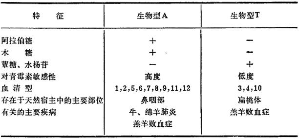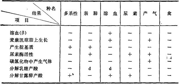 释义 | 巴氏杆菌属 本属为卵圆或短杆状的革兰氏阴性菌,组织中呈两极染色。培养物在室温保存的时间较冰箱长。本属包括六个种,即多杀性巴氏杆菌(P.multocida)、亲肺巴氏杆菌(P.pneumotropica)、溶血性巴氏杆菌(P.haemolytica)、尿素巴氏杆菌(P.ureae)、产气巴氏杆菌(P.aerogenes)和禽巴氏杆菌(P.gallinarum)。各个种的不同特征见表13-1。 表13-1 巴氏杆菌属各个种的不同特性 符号说明:a.为1981年Carter氏资料b.犬与猫的菌株对甘露醇产酸可以是阴性+.90%以上的菌株是阳性-.90%以上的菌株是阴性d.11~89%的菌株是阳性。 一、多杀性巴氏杆菌(P.multocida) 本菌为球杆状或短杆状,大小约0.25~0.4×0.5~2.5μm,常单个存在,病料直接涂片用瑞特氏染色或美蓝液染色可见明显的两极染色新分离的强毒菌株,可见荚膜。革兰氏染色阴性。 本菌能使多种畜禽发生巴氏杆菌病,主要表现为出血性败血症或传染性肺炎或局部慢性感染,对畜牧业危害很大。实验动物中对小白鼠与兔子有高度致病性,注射1~10个有毒活菌,常迅速发生致死性败血症。自禽类来源的菌株对鸽子也有强的致病性。 本菌抗原结构较复杂,Robert氏1947年用小白鼠血清保护试验方法分为Ⅰ、Ⅱ、Ⅲ和IV四个血清型。Carter氏1955~1960年用间接红细胞凝集试验方法,根据不同的荚膜物质分为A、BD、E四个血清型。Namioka和Murata1961年用试管凝集试验方法分为12个菌体型,但试验指出一种抗血清和多种异型抗原存在着交叉反应,判定困难。Heddleston1972用琼脂扩散试验方法,根据不同的耐热抗原,将多杀性巴氏杆菌分为1到16共十六个血清型,他认为是一种准确可靠的方法。根据中国兽药监察所自我国21个省、市12种动物分离的217株多杀性巴氏杆菌用改进了的琼脂扩散试验,进行了血清学分型,在我国感染家禽的多杀性巴氏杆菌主要为1型,感染牛、羊为2.5型,感染猪的主要为1型和2.5型,感染家兔的为1型和3型。 (一)检验步骤 1.样品采集 活的动物可采取血液及粘液,尸体可取心血、肝,牛、猪除上述病料外,可采取病变淋巴结、肺、肾及胸腹腔内渗出液等病料。 2.镜检 血液作推片、其他脏器等以剖面作涂片各若干片、数片作革兰氏染色、数片则作瑞特氏染色。镜检有大量的革兰氏阴性两极性小球杆菌,则可初步判断为巴氏杆菌病。 3.分离细菌 将病料划线接种于血琼脂、血清琼脂或BYP培养基(酵母浸膏5g、胰蛋白胨10g、食盐4g、亚硫酸钠0.1g、葡萄糖3g、L-半胱氨酸0.5g、琼脂15g、磷酸氢二钾4g、蒸馏水1000ml、pH7.2。),在血琼脂上24h后,可长成淡灰白色、圆形、湿润,露珠样小菌落,菌落周围不溶血。在血清琼脂上生长的菌落,于45度折光低倍显微镜观察菌落呈虹彩色。涂片染色镜检为革兰氏阴性小杆菌,即移种血斜面作纯培养,进一步进行生化反应试验。并可进行血清型的鉴定。 (二)动物试验 可将病料做成乳剂或用分离培养菌菌液皮下或腹腔接种小白鼠2~4只,每只0.2ml,一般小白鼠24~72h死亡,死后及时剖检,并作镜检和培养,以期确诊。 由于健康动物呼吸道内常常有带菌的特点,所以做细菌学检查时,最好应参照患畜生前的临床症状及剖检变化,而下最后诊断。 多杀性巴氏杆菌血清型鉴定步骤如下。 将分离培养物接种于葡萄糖淀粉琼脂上(如果菌落是显着的蓝色变异,需通过小白鼠以获得显着的粘液或光滑型菌落)。其简要步骤如下所列,详细方法见后。 1.荚膜物质的鉴定 (1)间接血凝试验 ①将待检菌株接种于血琼脂或马丁琼脂(马丁肉汤加琼脂)上,培养物用3~4ml生理盐水洗下,经56℃水浴处理30min(以促进荚膜物质由菌体脱开),用经离心分离的上清液(为荚膜抽提液)作为致敏红细胞的抗原; ②如为粘液状菌落,则先用透明质酸酶处理,即用0.1mol/L磷酸缓冲盐水(pH6)洗下菌落,在悬液中加入1ml磷酸缓冲盐水(pH6)内含15个国际配制方(50粘性—减少单位)的睾丸透明质酸酶。悬液置37℃水浴3~4h。然后经56℃水浴处理30min,离心分离取上清液作为致敏红细胞用的抗原; ③抗原致敏红细胞 方法按常规进行。致敏红细胞用生理盐水配制成0.5%悬液; ④正式试验如表13-2。 表13-2 间接血凝试验试剂的量与血清稀释度 设两管对照管(a)0.25ml生理盐水+0.25ml0.5%致敏红细胞悬液;(b)0.25ml1∶10稀释血清十0.25ml未致敏的0.5%红细胞悬液。 用力振摇试管架,使各成分充分混合,置室温约2h,看结果。然后将试管留在室温过夜第二次看结果。阳性反应出现明显的凝集。 试验也可在微量滴定板进行。每一菌株制备的抗原致敏红细胞,均分别与A、B、D、E型抗血清进行反应。 (2)用对流免疫电泳鉴定荚膜B与E型 抗原的制备与间接血凝试验同。 琼脂凝胶板按常规制备,凝固后在其上打孔,孔径3mm,两孔中心的距离7mm,将20μl荚膜抽提出液放于阴极孔内,同样的血清量放于阳极孔内,电泳槽内放满0.05mol/L巴比妥缓冲液,pH8.8,用150V电泳30min,然后检查沉淀线。出现清晰的沉淀线者为阳性反应。 (3)用透明质酸酶鉴定荚膜A型菌株 在新制备的葡萄糖淀粉或血琼脂平板上,将待检菌株横过接种于平板上,以产生约3~5mm宽的生长线。在待检菌株接种线的右角垂直地接种能产生多量透明质酸酶的金黄色葡萄球菌,接种的平板放37℃培养,定期观察直到24h。若靠近葡萄球菌生长线的待检菌株菌落变小,则可定为荚膜属A型的巴氏杆菌。因荚膜属A型的巴氏杆菌,菌体外周往往产生多量的粘液状物,成分为透明质酸;葡萄球菌产生的透明质酸酶能作用