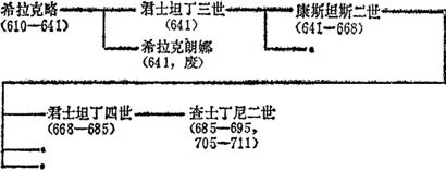 释义 | 希拉克略王朝 注1:695-698利昂希厄斯,698-705泰比里厄斯二世。 2:东罗马帝国(拜占廷)皇帝齐诺(474-491)以后,到希拉克略王朝建立之前,有下列皇帝: 阿纳斯泰希厄斯一世 (491-518) 查士丁一世 (518-527) 查士丁尼 (527-565) 查士丁尼二世 (565-578) 提贝里一世 (578-582) 摩里士 (582-602) 福加斯 (602-610) |