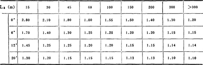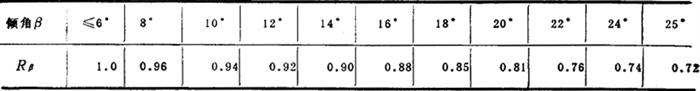 ①当带速较小,Pd较大,粒度较大时Rv取大值 Rβ——倾角系数,见表2-8-27 表2-8-27 倾角系数Rβ