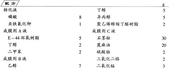 释义 | 带锈防锈漆 制法 (1)转化液的制备 按配比先将亚铁氰化钾研磨成细粉,放入100℃烘箱内烘2~3h,取出后自然冷却至室温。再放入耐酸容器中,在充分搅拌下逐渐加入磷酸,继续搅拌1h。停止搅拌,隔20min再搅拌,盖好盖,放置次日即成白色乳液,用纱布过滤后,密封保存,待用。 (2)成膜剂A液制备 将环氧树脂在水浴中加热,使其成流动液体,然后加在丁醇与二甲苯质量比为1∶1的混合液中,充分搅拌至全溶成为均匀溶液。 (3)成膜剂B液制备先将异丙醇、丁醇、乙醇混合均匀,再加入聚乙烯醇缩丁醛树脂,搅拌至全溶成为均匀溶液。 (4)成膜剂C液制备 先将蓖麻油于200℃烘箱内脱水,并通过空气氧化,使少量油分子分裂成脂肪酸,然后与其余物料混合,研磨均匀成糊状物。 最后按A液∶B液∶C液=9∶38∶3的质量配比混合,即得成膜剂。 该产品由转化液和成膜剂两部分组成。转化液中磷酸和亚铁氰化钾反应生成白色亚铁氰酸,再和铁锈反应生成蓝色颜料亚铁氰化亚铁和亚铁氰化铁,多余的磷酸与铁锈反应生成磷酸铁,这些生成物在钢铁表面形成薄膜,具有良好的防锈作用。因此这种带锈防锈漆的基本原理是把有害的铁锈,一部分转化为漆膜中的防锈颜料,另一部分转化为加强底漆的磷化膜,变成漆膜中的有用物质。 |