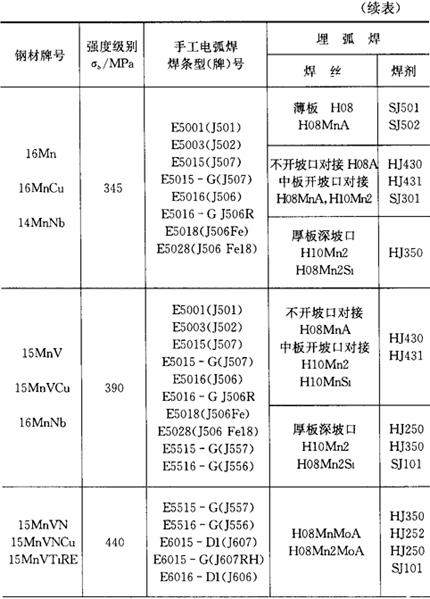 ③一般采用低氢型焊条,但对于强度等级295MPa、345MPa的非重要结构的合金钢也可采用酸性焊条。