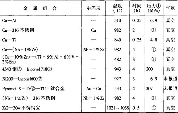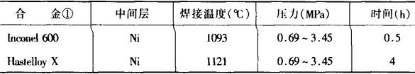 释义 | 常用材料的扩散焊 由于扩散焊的接头质量好且稳定,几乎适合各种材料的焊接,特别适用高温合金、复合材料、金属与陶瓷等的焊接。虽然其生产成本高,但在航空、航天工业等需要质量更为重要的场合下,得到广泛的应用。 1.钛及钛合金 钛是一种强度高、重量轻、耐腐蚀、耐高温的高性能材料,目前广泛地被应用在航空、航天工业中。多数钛结构要求减轻重量和接头质量比制造成本更重要。因此,较多地应用扩散焊方法。 钛合金不需要特殊的表面准备和特殊的控制就可容易地扩散焊接。常用焊接规范为:温度855~957℃;焊接压力2~5mPa;真空度1.33×10-2Pa以上,保温时间1~4h。应注意,钛能大量吸收O2、H2和N2等气体,因此不宜在H2、N2气氛中焊接。 2.镍合金 镍基合金主要用于耐高温、耐腐蚀及高强度的条件下,其熔焊的焊接性差,熔化焊时,接头强度远低于母材。因此较多地应用扩散焊。 扩散焊时,由于其高温强度高,须将这些合金在接近其熔化温度和相当高的压力下进行焊接,必须仔细地进行焊接表面准备,还必须在焊接过程中,严格控制周围气氛,防止表面污染,通常还需用纯镍或镍合金作中间层。表7-57列出一些镍合金的扩散焊规范。实际焊接规范还与零件的几何形状有关,要获得满意的焊接质量需进行多次实验。 表7-57 镍基合金典型扩散焊条件 ①商业牌号 3.铝及铝合金 铝及其合金的扩散焊接有一些困难,主要是清洗好的工件会在空气中很快生成一层氧化膜。铝与铝的直接焊接,需要较高的加热温度、较大的压力和高真空度。还可采用加中间扩散层的办法,中间层的材料可用Cu、Ni和Ag等,这时压力和加热温度都可降低。 4.钢 在大多数情况下,碳钢较易用熔焊方法焊接,所以通常不采用扩散焊。但要在大平面形成高质量接头的产品时,则可采用扩散焊。各种高碳钢、高合金钢也能顺利进行扩散焊。表7-58是几种钢材的真空扩散焊规范参数。 表7-58 几种常用钢材的真空扩散焊工艺 5.异种金属的扩散焊 当两种金属的冶金性能相差较多时,普通熔焊很难完成,这时扩散焊就特别适用,它可以获得满意的接头。在确定某个异种金属组合的扩散焊条件时,应考虑到两种金属之间相互扩散造成的问题: (1)界面形成中间相或脆性金属间化合物。可通过选择合适的中间层来防止这种问题。 (2)由于扩散而产生的金属迁移速度不同,而在紧邻焊缝界面处造成接头的多孔性。选择合适的焊接条件或适宜的中间层,可以解决问题。 (3)两种金属的热膨胀系数差异大,在加热和冷却过程中产生较大的应力,而产生工件变形或内应力过大,甚至开裂。解决措施往往要根据具体零件的要求、材料、焊接条件等设计。表7-59是几种异种金属组合的扩散焊规范。 表7-59 异种金属组合的扩散焊条件 注:①压力系借助于差动热膨胀夹具施加。②商业名称。③4340钢焊前在10-5torr真空中于1010℃进行24h除气对形成优良焊缝是关键性的。④这一组合在焊接温度下形成液态共晶。必须控制温度与时间以减小合金化区域的厚度。 6.复合材料 由于电子、航空、航天等工业的发展,对材料的性能要求越来越高。扩散焊适合于以下情况:由金属和陶瓷、金属和金属陶瓷、金属和玻璃、金属和石英、金属和石墨、金属和半导体等不同材料组成的零件。 |