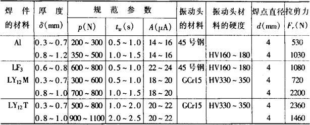 表7-51 铝及某些铝合金的超声波焊接规范及焊点强度