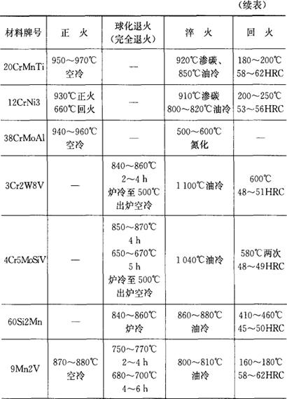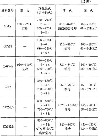 字词 | 常用模具材料热处理规范 |