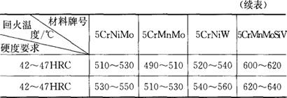 释义 | 常用模具材料热处理规范 (一)常用模具材料热处理工艺规范(表4.2-2) 表4.2-2 常用模具材料热处理工艺规范 (二)常用模具材料回火工艺规范 1.冷冲模工作零件回火工艺规范(表4.2-3) 表4.2-3 冷冲模工作零件回火工艺规范 2.热锻模材料回火工艺规范(表4.2-4) 表4.2-4 热锻模材料回火工艺规范 |
