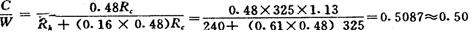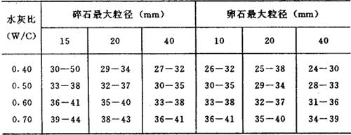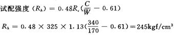 释义 | 常用混凝土配合比设计 常用混凝土是由水泥、砂、石子和水等材料按一定比例配合,经搅拌、成型及养护硬化而成。 在混凝土中砂填充石子的孔隙,共同起着骨架作用,故通常把砂、石称为骨料(细、粗骨料)。水泥和水组成的水泥浆,填充砂、石之间孔隙,并包裹在砂、石颗粒表面。在混凝土硬化之前,水泥浆在骨料间起润滑作用,使混凝土拌合物易于搅拌,浇捣密实;在硬化之后形成水泥石,将砂石牢固地胶结成整体。 (1)混凝土配合比设计 以《普通混凝土配合比设计技术规定》(JGJ55-81)为依据进行混凝土配合比计算。 ①配合比计算步骤:a.确定试配强度(Rh);b.确定水灰比( ;e.计算水泥量( (2)计算和选定的计算方法 ①计算试配强度(Rh): Rh=Rp+σo 式中 Rp-设计强度MPa(兆帕); σo-经验系数(如无历史统计资料,σo可按下表取值)。 表5-5 注:括号内数值为混凝土旧标号. ②计算灰水( 采用碎石时 采用卵石时 式中: Rc-水泥实际强度(MPa)。 在无法取得水泥实际强度数值时,可按下式计算: 式中 Rc-水泥强度; Kc-水泥强度富余系数1.13。 混凝土的最大水灰比和最小水泥用量应符合《钢筋混凝土工程施工及验收规范》的规定(见表5-6)。 ③选定混凝土用水量(wo)按骨料品种、规格及施工要求的塌落度值选择每立方米混凝土的用水量(wo)。用水量一般根据本单位所用资料,按经验选用。如无积累经验资料时,可参照表5-7选用。 表5-6 混凝土的最大水灰比和最小水泥用量表 注:(1)本表所列水灰比,系指水与水泥(包括外掺混合材料)用量之比; (2)表中最小水泥用量包括外掺混合材料;当人工捣实时应增加25千克/米3;当掺入外加剂,且能有效地改善混凝土的和易性时,水泥用量可减少25千克/米3; (3)强度为C8(100号)的混凝土,其最大水灰比和最小水泥用量可不受本表限制; (4)寒冷地区系指最冷月份的月平均温度在-5--15℃之间;严寒地区则指最冷月份平均气温低于-15℃。 表5-7 混凝土用水量选用表kg/m3 注:(1)本表用水量系采用中砂时的平均取值。如采用细砂时,每米3混凝土用水量可增加5-10千克,采用粗砂则可减少5-10千克。 (2)掺用各种外加剂或掺合料时,可相应增减用水量。 (3)混凝土的塌落度小于10毫米时,用水量按各地现有经验或经试验取用。 (4)本表不适用于水灰比小于0.4或大于0.8的混凝土。 ④选定混凝土砂率 砂与砂石的比称为砂率(Sp)。 混凝土砂率一般可根据本单位所用的资料并根据经选用合理数值。如无使用经验,可按骨料品种、规格及水灰比选用,见表5-8。 表5-8 混凝土砂率(%)选用表 注:(1)表中数值系中砂的选用砂率。对细砂或粗砂,可相应地减少或增加砂率; (2)本砂率表适用于塌落度为10-60毫米的混凝土。塌落度如大于60毫米或小于10毫米时,应相应地增加或减少砂率; (3)只用一个单粒级粗骨料配制混凝土时,砂率值应适当增加; (4)掺有各种外加剂或掺合料时,其合理砂率值应经试验或参照其他有关规定选用。 表5-9 混凝土混合物塌落度选用表 ⑤体积法和重量法 在已知砂率的情况下,粗、细骨料的用量可用体积法或重量求得。 a.用体积计算时,可使用以下两个关系式: b.用重量法计算时,则可使用以下两个关系式: Co+Go+So+Wo=rh 式中 Co-每米3混凝土的水泥用量(kg/m3); Go-每米3混凝土的粗骨料用量(kg/m3); So-每米3混凝土的细骨料用量(kg/m3); Wo-每米3混凝土的用水量(kg/m3); rc0-水泥密度(2.9-3.1g/cm3); rg-粗骨料视密度(g/cm3); rn-水的密度(1.0g/cm3); a-混凝土含气量百分数(%),在不使用含气型外加剂时a可取为1; rh-混凝土拌合物的假定容重(2400-2450kg/m3); Sp-砂率(%)。 (3)普通混凝土配合比设计实例 试制作现浇钢筋混凝土基础,混凝土设计强度为C18(200号),采用普通硅酸盐水泥31.88兆帕(325号),卵石最大粒径为40毫米,所需塌落度30-50毫米,水泥富余系数1.13,混凝土的试配强度Rh=18+4=22兆帕(200+40=240千克力/厘米2)。 解:①计算水灰比 采用卵石 将式中 ②选定用水量 已知混凝土所需塌落度为30-50毫米,卵石最大粒径40毫米,查表5-7得知用水量为170千克。 ③计算水泥用量 ④选用砂率已知水灰比( ⑤计算骨料 中砂(So)=(rh-Wo-Co)×33% =(2400-170-340)×33% =623.70kg 卵石(Go)=rh-Wo-Co-So =2400-170-340-623.70 =1266.30kg ⑥配制配合比 根据上述求得每立方米混凝土所需材料量,按单位重量比。 验算: 混凝土容重(rh)=Co+Go+So+Wo rh=340+623.70+1266.30+170 =2400kg/m3 符合规定要求Rh=Pp+σo=200+40 =240kgf/cm2 |