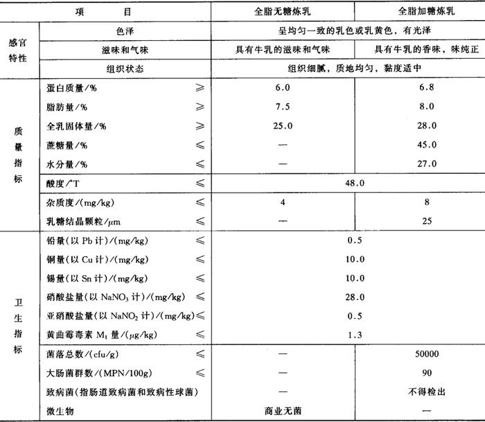 释义 | 常用的乳制品 在糕点、面包和饼干等食品中,常用的乳品有鲜乳、全脂乳粉、脱脂乳粉、甜炼乳、淡炼乳、奶油等。 (一)鲜乳 鲜乳是哺乳动物分泌的乳汁,主要有牛乳、羊乳等。生产中所说的鲜乳一般是指生鲜牛乳。鲜乳多在传统西点中使用。 1.生鲜牛乳质量指标(GB 5408.1-1999) (1)感官指标。生鲜牛乳呈乳白色或稍带微黄色;具有新鲜牛乳固有的香味,无其他异味;呈均匀的胶态流体,无沉淀、无凝块、无杂质和无异物等。 (2)理化和微生物指标。生鲜牛乳按理化和微生物指标可分为特级牛乳、一级牛乳和二级牛乳。生鲜牛乳的技术要求见表1-2-3。 表1-2-3 生鲜牛乳的一般技术要求 2.生鲜牛乳的采购验收 生鲜牛乳的采购验收应依据GB 6914-1986《生鲜牛乳收购标准》。生鲜牛乳如发现有下列情况之一者,不得收购。 (1)牛乳颜色有变化,呈红色、绿色或显着黄色者; (2)牛乳中有肉眼可见异物或杂质者; (3)牛乳中有凝块或絮状沉淀者; (4)牛乳中有畜舍味、苦味、霉味、臭味、涩味和煮沸味以及其他异味者; (5)产前15d内的胎乳或产后7d内的初乳; (6)用抗菌素或其他对牛乳有影响的药物治疗期间的母牛所产牛乳,和停药后3d内的牛乳; (7)添加有防腐剂、抗菌素和其他任何有碍食品卫生的物质的牛乳。 在原料乳的采购验收时,对原料乳的相对密度、温度、酸度应逐桶验收。主要进行乙醇试验、相对密度测定、脂肪测定和煮沸试验等。要对乳源进行分级收购,分开贮藏,要防止异常乳混入。 异常乳是指生理异常乳、病理异常乳、化学异常乳及人为异常乳等。 生鲜牛乳的技术要求见表1-2-4。 表1-2-4 生鲜牛乳收购标准(GB 6914-1986) (二)乳粉(Dried milk products) 乳粉因其便于贮藏、运输和取用方便,广泛用于面包、饼干和糕点等食品生产中。乳粉一般可分为全脂乳粉、脱脂乳粉、全脂加糖乳粉和调味乳粉。 全脂乳粉是以牛乳或羊乳为原料,经浓缩、干燥制成的粉状产品。 脱脂乳粉是以牛乳或羊乳为原料,经分离脂肪、浓缩、干燥制成的粉状产品。 全脂加糖乳粉是以牛乳或羊乳、白砂糖为原料,经浓缩、干燥制成的粉状产品。 调味乳粉是以牛乳或羊乳(或全脂乳粉、脱脂乳粉)为主料,添加调味料等辅料,经浓缩干燥(或干混)制成的、乳固体含量不低于70%的粉状产品。 优质的乳粉应有以下感官特征。 滋味及气味:具有消毒牛乳(脱脂消毒牛乳)的纯香味,无其他异味。 组织状态:干燥粉末结块。 色泽:全部一色,呈浅黄色。脱脂乳粉呈白色、色泽均匀、有光泽。 冲调性:润湿下沉快,冲调后完全无团块,杯底无沉淀。脱脂乳粉无此项指标要求。 乳粉质量指标参见GB5410-1999《全脂乳粉、脱脂乳粉、全脂加糖乳粉和调味乳粉》,其技术要求见表1-2-5。 表1-2-5 全脂乳粉、脱脂乳粉、全脂加糖乳粉和调味乳粉技术要求(GB 5410-1999) (三)炼乳(Condensed milk) 炼乳分为全脂无糖炼乳(淡炼乳)和全脂加糖炼乳(甜炼乳)两种,以甜炼乳在面包、糕点生产中使用较多。 全脂无糖炼乳是以牛乳为原料,经浓缩、灭菌制成的黏稠状液体产品。 全脂加糖炼乳是以牛乳为主料,经杀菌、添加白砂糖、浓缩制成的黏稠状液体产品。 炼乳的质量指标参见GB 5417-1999《全脂糖炼乳和全脂加糖炼乳》,其技术要求见表1-2-6。 表1-2-6 全脂无糖炼乳和全脂加糖炼乳技术要求(GB 5417-1999) 作为焙烤食品工业原料用的甜炼乳卫生标准参见GB 13102-1991《食品工业用甜炼乳卫生标准》,其各项指标见表1-2-7。 表1-2-7 食品工业用甜炼乳卫生标准(GB 13102-1991) (四)食用干酪素(Casein) 干酪素又称干酪质、蛋酪白精、乳酪素。系采用含脂率极低的新鲜脱脂乳经适当方法处理使其中的酪蛋白凝固,然后脱水、干燥而制成的粉末状制品。 干酪素的组成如下:酪蛋白94%、钙2.9%、镁0.1%、有机磷酸盐(以P计)1.4%、柠檬酸盐(以柠檬酸计)0.5%。 这种食用可溶性干酪素可按5%~10%加入面粉中,生产面包、饼干和糕点。 (五)干酪(Cheese) 干酪的营养价值很高,其中含有丰富的蛋白质、脂肪和钙、磷、硫等矿物质及丰富的维生素。干酪在制造和成熟过程中,在微生物和酶的作用下,发生复杂的生物化学变化,使不溶性的蛋白质混合物转变为可溶性物质,乳糖分解为乳酸与其他混合物。这些变化使干酪具有特殊的风味,并促进消化吸收率的提高。干酪是面包、糕点、饼干的重要营养强化物质。 干酪在乳制品中种类最多,以水分含量为标准可将干酪分为硬质、半硬质、软质等几类。硬质干酪是以牛乳为原料,经巴氏杀菌,添加发酵剂、凝乳、成形、发酵等过程而制得的产品。 优质的干酪应该具有下列感官特征:具有干酪特有的滋味和气味,香味浓郁;质地均匀,软硬适度,组织细腻,有可塑性;具有该品种干酪正常的纹理图案;色泽呈白色或淡黄色,有光泽;外形良好,具有该种产品正常的形状;包装良好。 硬质干酪的卫生标准参见GB 5420-1985《硬质干酪卫生标准》,其食品卫生理化指标和微生物指标见表1-2-8。 表1-2-8 硬质干酪理化指标和微生物指标(GB 5420-1985) 在焙烤食品中常用的干酪制品还有酶变性干酪和粉末干酪香精等。所谓酶变性干酪是指经过酶处理以增强其风味或强化其某一特定风味的干酪。酶变性干酪的组织结构有些产品与普通的干酪一样,亦有浆状形态,甚至是喷雾干燥粉末状酶变性干酪。 (六)乳清制品 乳清是生产干酪时所得的一种天然副产品。随着现代科学
