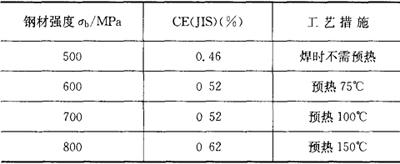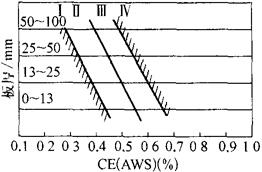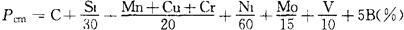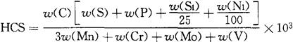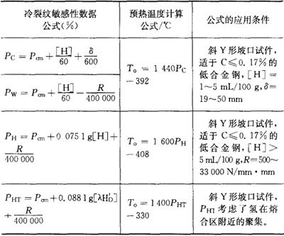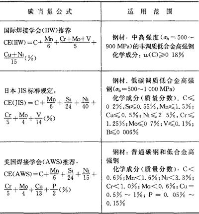 释义 | 常用试验方法 金属材料焊接性的测试方法很多,参考文献[5]给予了较为全面的叙述。本书仅就常用的方法作一介绍。 (一)工艺焊接性间接评估法 1.钢材焊接冷裂纹敏感性碳当量计算 由于焊接热影响区的淬硬及冷裂纹倾向与钢种的化学成分有关,可以利用化学成分间接地评估钢材冷裂纹的敏感性。以碳的作用系数为1,把钢中包括碳在内的合金元素含量,按其作用大小换算成碳的相当含量,以此作为粗略评定钢材冷裂倾向的一种参考指标,即所谓碳当量法。表7.1-1列出了常用的碳当量公式及适用范围。因为世界各国和各研究单位所采用的试验方法和钢材牌号的不同,所建立的碳当量公式有所不同,使用时应注意适用范围。 表7.1-1 常用的碳当量公式及其适用范围 注:计算某钢种的碳当量时,直接把该钢种实际的合金元素的质量分数(%)代入表中公式相应元素的符号内。若给出的是元素含量范围,则取其上限值代入。 分析表7.1-1中各公式可总结出如下规律:即碳当量的数值越大,被焊钢材的淬硬倾向就越大,热影响区越容易产生冷裂纹。因此,就可以用碳当量的大小来评定钢材焊接性的优劣,并由此提出防止产生焊接裂纹的最佳焊接条件。评定时需注意: ①对于板厚小于20mm的钢材,若CE(IIW)<0.4%则淬硬倾向不大,焊接性良好,焊前不需预热;若CE(IIW)=0.4%~0.6%,钢材易淬硬,说明焊接性已变差,焊时需预热才能防止焊接裂纹的产生。随着板厚增大,预热温度要相应提高。 ②日本JIS标准的碳当量公式除需考虑板厚因素外,还必须同时考虑钢材的强度级别。当板厚小于25mm,采用焊条电弧焊接,热输入为17kJ/cm时,规定了不产生裂纹的碳当量界限和相应的预热措施,见表7.1-2。 表7.1-2 按钢材强度和碳当量确定预热温度 ③当使用美国焊接学会推荐的碳当量公式时,需根据计算出来的钢种碳当量再结合焊件的厚度从图7.1-1中查出该钢材的焊接性的优劣等级。再从表7.1-3中确定出不同焊接性钢材的最佳焊接条件。 图7.1-1 焊接性与碳当量及板厚关系 表7.1-3 不同焊接性等级钢材的最佳焊接条件 2.低合金钢焊接冷裂纹敏感性指数法 表7.1-1所列碳当量公式主要适用于碳素钢的结合性能评定。对于近代大力发展的低碳微量多合金元素的低合金高强钢,在评定焊接冷裂纹敏感性时,需要综合考虑材料的化学成分、熔敷金属中扩散氢含量、接头的拘束应力三大因素。因此,研究人员采用Y形铁研试验,提出了由上述三大因素共同作用下所建立的冷裂纹敏感指数数据公式。低合金钢焊接冷裂纹敏感性指数及焊接预热温度的确定原则见表7.1-4。 表7.1-4 冷裂纹敏感性数据及焊接预热温度确定 注:表中Pcm——冷裂纹敏感系数(%)。 其适用范围:C0.07%~0.22%,Si0%~0.60%,Mn0.40%~1.4%;Cu0%~0.50%,Ni0%~1.20%:Mo0%~0.70%,V0%~0.12%;Nb0%~0.04%,Ti0%~0.5%,B0%~0.005%,[H]——熔敷金属中扩散氢含量(日本JIS甘油法与我国GB/T 3965-1995测氢法等效)(mL/100g); δ——被焊金属的板厚(mm), R——拘束度(N/mm·mm), λ——有效系数(低氢型焊条λ=0.6, 我国根据国产低合金钢特点,考虑由Pcm、[H]、δ和钢材抗拉强度σb等因素,建立起的防止冷裂纹的预热温度计算公式: To(℃)=324Pcm+17.7[H]+0.14σb+4.72δ-214 式中 [H]——熔敷金属的扩散氢含量(mL/100g)(GB/T 3965-1995); Pcm——裂纹敏感系数(%)同表7.1-4表注公式; σb——被焊金属抗拉强度(MPa); δ——被焊金属板厚(mm)。 此公式含钢材强度因素。 3.热裂纹敏感指数法 在试验研究的基础上提出可预测或评估金属材料热裂纹倾向的指(系)数方法。 ①热裂纹敏感系数(简称HCS)法其计算公式为: 当HCS≤2时,不会产生热裂纹。HCS愈大的金属材料,其热裂纹敏感性也愈高。 ②临界应变增长率(简称CST)法用下式计算: CST=(-19.2ω(C)-97.2ω(S)-0.8ω(Cu)-1.0ω(Ni)+3.9ω(Mn)+65.7ω(Nb)-618.5ω(B)+7.0)×10-4 当CST≥6.5×10-4时,可以防止裂纹。 4.焊接热影响区(HAZ)最高硬度法 采用焊接热影响区的最高硬度间接地评价被焊钢材的淬硬倾向和冷裂纹的敏感性,因其测定的方法简单易行,已被国际焊接学会(IIW)采用,我国也已制定了适用于手弧焊的国家标准:GB/T 4675.5-1984,《焊接性试验 焊接热影响区最高硬度试验方法》。具体试验要点如下: ①试件制备。试件的形状和尺寸分别见图7.1-2和表7.1-5。试件标准厚度为20mm,若实际板厚超过20mm,则用机械加工成20mm厚,并保留一个轧制表面。若板厚小于20mm,则不需加工。可用气割下料,1号、2号试件各备一块。 图7.1-2 试件的形状 表7.1-5 试件尺寸 (mm) ②试验条件。焊前清除试件表面的水、油、铁锈及过厚的氧化皮;焊时试件两端要支承架空,试件下面留有足够空间:1号试件在室温,2号试件在预热温度下进行焊接;采用平焊位置,沿试件轧制表面的中心线焊出长为(125±10)mm的焊缝,见图7.1-2。用直径为4mm焊条,焊接电流(170+10)A,焊接速度为(150±10)mm/min施焊。焊后在静止空气中自然冷却,不进行任何热处理。 ③硬度的测定。焊后经12h冷却后,在室温下用机械加工方法垂直切割焊缝中部,在此断面上取硬度测量试样。试样的检测面经研磨后再腐蚀。然后按图7.1-3所示,划一条既切于熔合线底部切点O,又平行于试样轧制表面的直线。在室温下沿直线上每隔0.5mm测一点,用载荷为10kg的维氏硬度计测定。以切点O及其两侧各7个以上的点作为硬度的测定点。硬度试验应按GB/T 4340.1-1999《金属维氏硬度试验 第1部分:试验方法》规定执行。 图7.1-3 测定硬度的位置 (二)