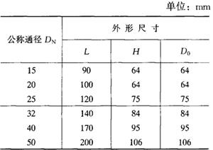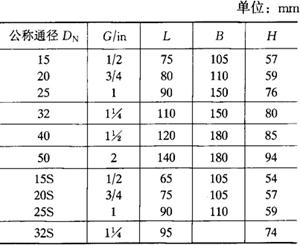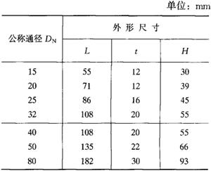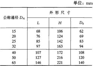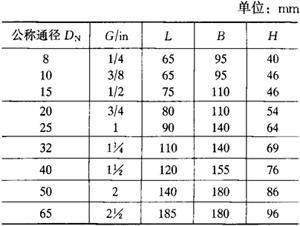 释义 | 常用阀门型号规格 1.球阀(广东球阀厂产品) (1)内螺纹管式球阀(CQ11F) 结构见图4-14-6,规格见表4-14-11。 图4-14-6 内螺纹管式球阀(CQ11F) 表4-14-11 内螺纹管式球阀(CQ11F)规格 单位:mm (2)内螺纹球阀(Q11F) 结构见图4-14-7,规格见表4-14-12。 图4-14-7 内螺纹球阀(Q11F) 表4-14-12 内螺纹球阀(Q11F)规格 (3)内螺纹球阀(三块式)(Q11F) 结构见图4-14-8,规格见表4-14-13。 图4-14-8 内螺纹球阀(Q11F) 表4-14-13 内螺纹球阀(Q11F)规格 (4)外螺纹球阀(通口、缩口型)(Q21F) 结构见图4-14-9,规格见表4-14-14。 图4-14-9 外螺纹球阀(Q21F) 表4-14-14 外螺纹球阀(Q21F)规格 (5)外螺纹球阀(Q21F) 结构见图4-14-10,规格见表4-14-15。 图4-14-10 外螺纹球阀(Q21F) 表4-14-15 外螺纹球阀(Q21F)规格 (6)法兰球阀(Q41F) 结构见图4-14-11,规格见表4-14-16。 图4-14-11 法兰球阀(Q41F) 表4-14-16 法兰球阀(Q41F)规格 2.截止阀 (1)内螺纹截止阀 桂林第二阀门厂产品的结构见图4-14-12,规格见表4-14-17。 图4-14-12 内螺纹截止阀 表4-14-17 内螺纹截止阀规格 (2)两用型截止阀 太湖阀门厂产品的结构见图4-14-13,规格见表4-14-18。 图4-14-13 两用型截止阀 表4-14-18 两用型截止阀规格 3.止回阀 (1)内螺纹升降式止回阀(HJ11W-16) 辽宁瓦房店阀门厂产品的结构见图4-14-14,规格见表4-14-19。 图4-14-14 内螺纹升降式止回阀(HJ11W-16) 表4-14-19 内螺纹升降式止回阀(HJ11W-16)规格 (2)内螺纹升降式止回阀(H11T-16) 山西汾阳阀门厂产品的结构见图4-14-15,规格见表4-14-20。 图4-14-15 内螺纹升降式止回阀(H11T-16) 表4-14-20 内螺纹升降式止回阀(H11T-16)规格 (3)法兰联接升降式止回阀(H41T-16) 山西汾阳阀门厂产品的结构见图4-14-16,规格见表4-14-21。 图4-14-16 法兰联接升降式止回阀(H41T-16) 表4-14-21 法兰联接升降式止回阀(H41T-16)规格 4.疏水阀 (1)自由浮球式蒸汽疏水阀 成都航空仪表公司产品的结构见图4-14-17,规格见表4-14-22。 图4-14-17 自由浮球式蒸汽疏水阀 1-阀体 2-阀盖 3-浮球 4-螺塞 5-阀座 6-螺塞 7-滤网 8-浮动罩 9-排气口 10-双金属片 11-螺塞 12-螺塞 表4-14-22 自由浮球式蒸汽疏水阀规格 (2)钟形浮子式疏水阀 桂林第二阀门厂产品的结构见图4-14-18,规格见表4-14-23。 图4-14-18 钟形浮子式疏水阀 表4-14-23 钟形浮子式疏水阀规格 (3)钟形浮子式法兰疏水阀 上海奉贤机械厂产品的结构见图4-14-19,规格见表4-14-24。 图4-14-19 钟形浮子式法兰连接疏水阀 表4-14-24 钟形浮子式法兰联接疏水阀规格 5.安全阀 (1)外螺纹弹簧封闭式安全阀(A21H-16C) 上海闸门厂产品的结构见图4-14-20,规格见表4-14-25。 图4-14-20 外螺纹弹簧封闭式安全阀(A21H-16C) 表4-14-25 外螺纹弹簧封闭式安全阀(A21H-16C)规格 (2)弹簧封闭式安全阀(CA4A1Y-16C、CA4A1Y-16P) 沈阳第一闸门厂产品的结构见图4-14-21,规格见表4-14-26。 图4-14-21 弹簧封闭式安全阀(CA4A1Y) 表4-14-26 弹簧封闭式安全阀(CA4A1Y)规格 |
