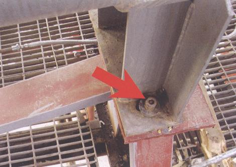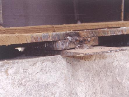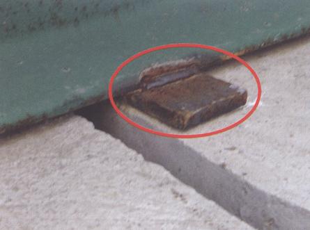 2-2-6 斜垫铁搭接长度不足,底层斜垫铁悬空;未在垫铁两侧断续焊