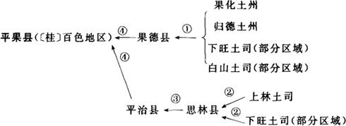 释义 | 平果县 位于东经107°18′~107°53′、北纬23°12′~23°54′之间。 由平治县、果德县合并而成,各取一字称平果县。 ①1912年称果化土州、归德土州、下旺土司、白山土司;1915年合并成立果德县。②1912年称上林土司;下旺土司;1926年合并成立思林县。③1934年改为平治县。④1951年,撤销平治县、果德县,置平果县。 1912年隶广西省。1958年3月5日后隶广西僮族自治区。1965年10月12日广西僮族自治区更名为广西壮族自治区。 平昌设治局 见149页“平昌县”。 |