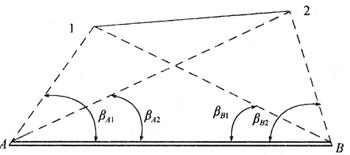 释义 | 平面点位的测设 点的平面位置的测设是根据已布设好的施工控制点的坐标和待测设点的坐标,反算出测设数据,即控制点和待测设点之间的水平距离和水平角,再利用上述测设方法标定出设计点位。 根据所用的仪器设备、控制点的分布情况、测设场地地形及测设点精度要求等条件,点的平面位置的测设放样方法一般有极坐标法、直角坐标法、角度交会法、距离交会法、十字方向法和全站仪坐标测设法等几种,其中,使用最为方便的是极坐标法。 1.极坐标法 极坐标法是根据控制点、水平角和水平距离测设点平面位置的方法。在控制点与测设点间便于钢尺量距(或电子测距)的情况下,采用此法较为适宜,而利用测距仪或全站仪测设水平距离,则没有此项限制,且工作效率和精度都较高。 如图9-9所示,A(xA,yA),B(xB,yB)为已知控制点;1(x1,y1),2(x2,y2)点为待测设点。根据已知点坐标和测设点坐标,用坐标反算方法计算出测设数据,即:D1,D2;β1=αA1-αAB,β=αA2-αAB。 测设时,经纬仪安置在A点,后视B点,取盘左位,并置度盘为零,按盘左、盘右分中法测设水平角β1,β2,定出1,2点方向,沿此方向测设水平距离D1,D2,则可在地面标定出设计点位1,2两点。 图9-9 极坐标法测设点的平面位置 最后进行检核。检核时,可以采用丈量实地1,2两点之间的水平边长,并与1,2两点设计坐标反算出的水平边长进行比较。务必达到进度要求,否则,需重新放样。 如果待测设点的精度要求较高,可以利用前述的精确方法测设水平角和水平距离。 2.直角坐标法 直角坐标法是根据直角坐标的基本原理所形成的一种测设点位的工作方法。通常,当建筑场地已建立有主轴线或建筑方格网时,一般采用直角坐标法来完成施工场地上的测设工作。 如图9-10所示,A,B,C,D为建筑方格网(或建筑基线)控制点,1,2,3,4点为待测设建筑物轴线的交点,建筑方格网(或建筑基线)分别平行或垂直于待测设建筑物的轴线。根据控制点的坐标和待测设点的坐标可以计算出两者之间的坐标增量。下面以测设1,2点为例,说明测设方法。 图9-10 直角坐标法放样 首先计算出A点与1,2点之间的坐标增量,即△xA1=x1-xA,△xy1=y1-yA。然后即可在施工现场,利用方格网控制点进行实地放样工作。 测设1,2点平面位置时,首先在A点安置经纬仪,照准C点,沿此视线方向从A向C方向测设水平距离△xy1定出1′点。再安置经纬仪于1′点,盘左照准C点(或A点),测设出90°方向线,并沿此方向分别测设出水平距离△xA1和△x12定1,2两点。同法以盘右位置再定出1,2两点,确定出1,2两点在盘左和盘右状况下测设点的中点,即为所需放样点的平面位置。 采用同样的方法可以测设3,4点的平面位置。 最后,进行测量检核。检核时,可以在已测设好的点平面位置上架设经纬仪,检测各个角度是否符合设计要求,并丈量各条边长。务必达到所需质量标准。 3.角度交会法 角度交会法是在两个控制点上分别安置经纬仪,根据相应的水平角测设出相应的方向,并根据两个方向交会定出点位平面位置的一种放样方法。此法适用于测设点离控制点较远或量距有困难的情形。 如图9-11所示,首先,根据控制点A,B和测设点1,2的坐标,反算测设出数据βA1,βA2,βB1和βB2角度值。然后,将经纬仪安置在A点,瞄准B点,利用βA1,βA2角值按照盘左盘右分中法,定出A1,A2方向线,并在其方向线上的1,2两点附近分别打上两个木桩(俗称骑马桩),桩上钉小钉以表示此方向,并用细线拉紧。然后,在B点安置经纬仪,同法定出B1,B2方向线。根据A1和B1,A2和B2方向线可以分别交出1,2两点,即为所求待测设点的位置。 图9-11 角度交会法 当然,也可以利用两台经纬仪分别在A,B两个控制点同时设站,测设出方向线后标定出1,2两点。 检核时,可以采用丈量实地1,2两点之间的水平边长,并与1,2两点设计坐标反算出的水平边长进行比较。 4.距离交会法 距离交会法是从两个控制点利用两段已知距离进行交会定点的方法。当建筑场地平坦且便于量距时,用此法较为方便。 如图9-12所示,A,B为控制点,1点为待测设点。首先,根据控制点和待测设点的坐标反算出测设数据DA和DB,然后用钢尺从A,B两点分别测设两段水平距离DA和DB,其交点即为所求1点的平面位置。 图9-12 距离交会法 同样,2点的位置可以由附近的地形点P,Q交会出。 检核时,可以实地丈量1,2两点之间的水平距离,并与1,2两点设计坐标反算出的水平距离进行比较。 5.十字方向线法 十字方向线法是利用两条互相垂直的方向线相交得出待测设点位的一种方法。如图9-13所示,设A,B,C,D为一个基坑的范围,P点为该基坑的中心点位,在挖基坑时,P点会遭到破坏。为了随时恢复P点的位置,则可以采用十字方向线法重新测设P点。 图9-13 十字方向线法 首先,在P点架设经纬仪,设置两条相互垂直的直线,并分别用两个桩点来固定。当P点被破坏后需要恢复时,则利用桩点A′、A″和B′、B″拉出两条相互垂直的直线,根据其交点重新定出P点。 为了防止由于桩点发生移动而导致P点测设误差,可以在每条直线的两端各设置两个桩点,以便能够发现错误。 6.全站仪坐标法 全站仪不仅具有测设精度高、速度快的特点,而且可以用它直接测设点的位置。同时,全站仪在施工放样中受天气和地形条件的影响较小,因此在生产实践中应用广泛。 全站仪坐标测设法,就是根据控制点和待测设点的坐标定出点位的一种方法。首先,将仪器安置在控制点上,