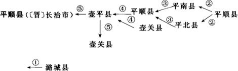 释义 | 平顺县 位于东经113°15′~113°38′、北纬35°58′~36°28′之间。 ①公元1529年(明嘉靖八年)以前称潞城县;1529年析潞城、黎城、壶关各一部分置平顺县;1940年1月13日成立平顺县抗日民主政府;②1940年7月平顺县分为平南县、平北县。③1942年2月平南县、平北县合并,仍称平顺县。④1953年10月,平顺县与壶关县合并,称壶平县。⑤1960年壶平县分治,恢复平顺县、壶关县。 1912年隶山西省。1940年隶太行区。1949年复隶山西省。 平泉州 见151页“平泉县”。 |
