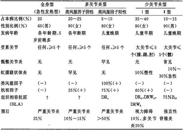 释义 | 幼年型类风湿关节炎 【释义】: 又称幼年型类风湿病,小儿时期常见,以慢性关节炎为主要特点,伴全身多系统受累。年幼儿常全身症状突出,年长儿则较多限于关节炎症状。 【诊断】: 1.临床表现 (1)发热 呈弛张型,可伴寒战,持续数周或数月后可自行缓解,但易复发。 (2)皮疹 常为圆型充血性斑丘疹,可融合成片,分布于胸部及四肢近端,随体温的升降而时现时隐。 (3)关节症状 单个或多个关节肿痛,大小关节均可受累。发病6个月后可有关节僵直变形。 (4)肝、脾及全身淋巴结肿大。 (5)部分患儿可出现胸膜炎、心包炎、虹膜睫状体炎等。 2.辅助检查 (1)实验室检查 1)贫血 白细胞增多(>20×109/L),血小板增多。 2)血沉 增快。 3)C反应蛋白 阳性。 4)多关节炎型 年龄较大的女孩中,类风湿因子多为阳性。 5)抗核抗体 可阳性。 6)血清 IgA,IgG,IgM增高。 (2)影像学检查 骨、关节X线摄片,早期可见关节腔增宽,周围软组织肿胀,后期有关节面骨质破坏。 3.类风湿分型 幼年类风湿性关节炎,详见表10-3。 表10-3 幼年类风湿关节各型临床特点 注 资料来源:梁翊常.结缔组织病——实用儿科学(第6版).北京:人民卫生出版社,1996 【治疗】: 1.一般治疗 注意休息、适当营养,配合理疗及体育疗法以防关节强直与肌肉萎缩。治疗扁桃体炎、鼻窦炎、龋齿等局部病灶,预防感冒。 2.药物治疗 (1)阿司匹林 剂量与用法同风湿热,疗程常需>半年。 (2)吲哚美辛(消炎痛) 对小关节型有良效,开始剂量每天0.5mg/kg,渐增加至每日2.5mg/kg。症状控制后用维持量半年以上。 (3)金制剂 为第二线药,作用慢,需3个月以上起效。硫代苹果酸钠金0.25mg/kg,每周1次肌注。如无不良反应,每周加量0.25mg/kg,至第4周1mg/kg,连续用20~26周。此后每2~4周1次,症状消失1年停药。应注意药疹、蛋白尿、肝损伤、粒细胞减少等毒副作用。 (4)皮质类固醇 用于严重的全身型并发心肺受累或小关节型并发虹膜睫状体炎患儿。泼尼松(强的松)每日1~2mg/kg,症状减轻后逐步减量,至最小有效量后改隔日顿服并加用阿司匹林。 (5)免疫抑制剂 全身症状严重及进行性之关节炎患儿,应用阿司匹林无效者,可使用甲氨蝶呤或环磷酰胺,剂量见红斑狼疮治疗节。 (6)其他药物 萘普生、布洛芬、双氯芬酸钠、青霉胺等均可选用。 3.外科及眼科治疗 关节强直畸形作矫形或关节成形术。虹膜睫状体炎采用散瞳,局部点地塞米松眼药水等。 |