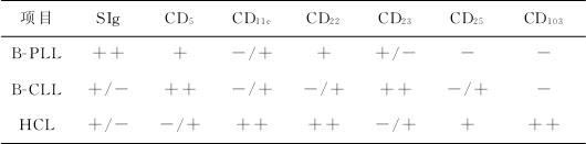 3.急性淋巴细胞白血病(ALL) ALL患者血及骨髓有大量幼稚淋巴细胞,有时脾也明显肿大,也需和PLL鉴别。①ALL以儿童及青少年多见,PLL则主要见于老年人;②ALL常伴浅表淋巴结肿大,而PLL少见,仅见于部分T—PLL;③形态学上ALL的原始、幼稚淋巴细胞染色质较PLL细,核仁不如PLL清晰;④免疫表型,B—ALL表达较早期抗原,如CD20、CD19、CD10,而B—PLL则表达较成熟抗原,如SIg等。 |