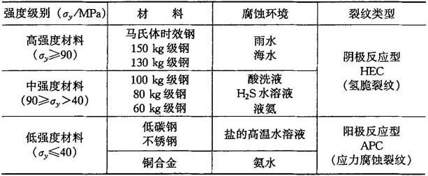 表11-53列出了材料强度和应力腐蚀裂纹的分类.