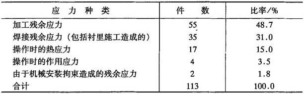 表11-54 按奥氏体不锈钢制设备的应力腐蚀裂纹原因划分的件数