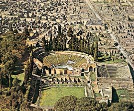 释义 | 庞贝(Pompeii) 意大利那不勒斯附近的古城。 约建于公元前7世纪。距维苏威火山约10公里。公元79年8月24日火山爆发,与另一小城赫库兰尼姆(Herculaneum)同被湮没。自18世纪中叶起,考古学家断续发掘其遗址,获石头街道、各种建筑物、工艺品及雕塑、壁画等大量古迹,再现了罗马帝国初期意大利城市的生活情景。 庞贝城废墟鸟瞰 |