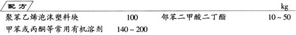 将干净的废泡沫塑料块剪碎,加入甲苯或丙酮等有机溶剂溶解。再加入邻苯二甲酸二丁酯,搅拌均匀后,即可装瓶,成为产品。