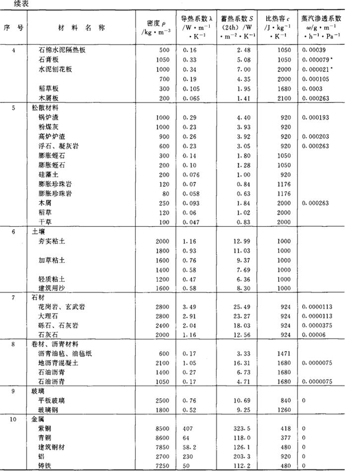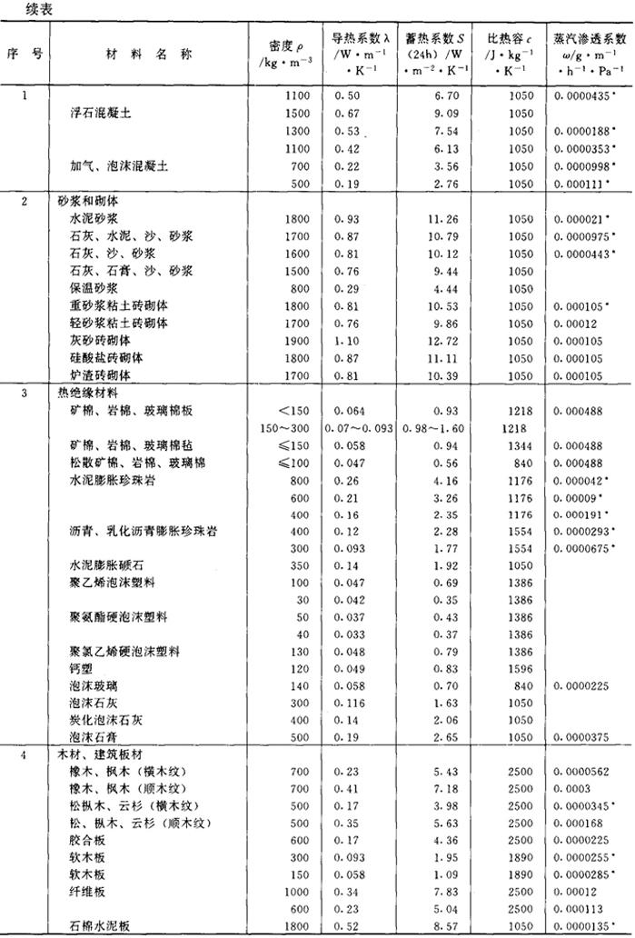 注:表中带*的蒸汽渗透系数为测定值,试验温度为20C,未扣除两侧边界层蒸汽渗透的影响。