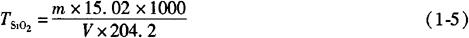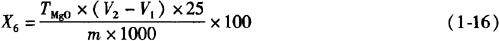 释义 | 建筑石灰试验方法(化学分析方法) 1.分析方法 (1)二氧化硅的测定 1)氟硅酸钾容量法 ①方法提要 在有过量的氟,钾离子存在的强酸性溶液中,使硅酸形成氟硅酸钾(K2SiF6)沉淀,经过滤、洗涤、中和滤纸上的残余酸后,加沸水使氟硅酸钾沉淀水解生成等当量的氢氟酸,然后以酚酞为指示剂,用氢氧化钠标准溶液进行滴定。 ②试剂 a.硝酸(浓); b.氯化钾(固体); c.氟化钾溶液(150g/L):将15g氟化钾放在塑料杯中,加50mL水溶解后,再加20mL硝酸,用水稀释至100mL,加固体氯化钾至饱和,放置过夜,倾出上层清液,贮存于塑料瓶中备用; d.氯化钾-乙醇溶液(50g/L):将5g氯化钾溶于50mL水中,用95%乙醇稀释至100mL混匀; e.酚酞指示剂乙醇溶液(10g/L):将1g酚酞溶于95%乙醇,并用95%乙醇稀释至100mL; f.氢氧化钠标准溶液(0.05mol/L):将10g氢氧化钠溶于5L水中,充分摇匀,贮存于塑料桶中; 标定方法:准确称取0.3000g苯二甲酸氢钾置于400mL烧杯中,加入约150mL新煮沸的冷水(用氢氧化钠溶液中和至酚酞呈微红色),使其溶解,然后加入7~8滴酚酞指示剂乙醇溶液(10g/L),以氢氧化钠标准溶液滴定至微红色为终点,记录V。 氢氧化钠溶液对二氧化硅的滴定度按式(1-5)计算。 式中 TS1O2——每毫升氢氧化钠标准溶液相当于二氧化硅的毫克数; m——苯二甲酸氢钾质量,g; V——氢氧化钠标准溶液的体积,mL; 204.2——苯二甲酸氢钾的摩尔质量,g; 15.02——二氧化硅的摩尔质量,g。 ③分析步骤 准确称取试样约0.3000g,置于银坩埚中,加入4g氢氧化钠盖上盖,并留有缝隙,于高温炉内升温至600~650℃熔融20min取出冷却,用热水将熔融物浸出,倒入塑料杯中,并洗净银坩埚,也倒入塑料杯中然后依次加15mL硝酸及10mL氟化钾溶液(150g/L),冷却后加固体氯化钾,仔细搅拌至饱和并有少量氯化钾析出。于冷水中静置15~20min,用中速滤纸过滤,塑料杯及沉淀用氯化钾溶液(50g/L)洗3次,将滤纸连同沉淀取下,置于原塑料杯中,沿杯壁加入10mL氯化钾-乙醇溶液(50g/L)及1mL酚酞指示剂乙醇溶液(10g/L)。用0.05mol/L氢氧化钠标准溶液中和未洗净的酸,至溶液呈微红色,然后加入200mL沸水(煮沸用氢氧化钠溶液中和至酚酞呈微红色),用0.05mol/L氢氧化钠标准溶液滴定至微红色,记录V。 ④结果计算 二氯化硅的百分含量(X1)按式(1-6)计算。 式中 TS1O2——每毫升氢氧化钠标准溶液相当于二氧化硅的毫克数; V——滴定时消耗氢氧化钠标准溶液的体积,mL; m——试样质量,g。 2)氯化铵重量法 ①方法提要 试样加少量无水碳酸钠于铂坩埚内,放在高温下烧结。用盐酸分解。加固体氯化铵后,在沸水浴上加热蒸发使硅酸凝聚,过滤沉淀,经高温灼烧恒重,用氢氟酸处理后,再经高温灼烧恒重,求得二氧化硅的百分含量。 ②试剂 氯化铵(固体);盐酸;盐酸(1+1);盐酸(3+97);硝酸;氢氟酸;硫酸(1+4);焦硫酸钾(固体)。 ③分析步骤 准确称取试样约0.5000g,置于铂坩埚中,加入0.3g研细的无水碳酸钠,混匀,将铂坩埚放入950~1000℃高温炉内熔融10min,取出冷却。 将熔融块倒入150mL瓷蒸发皿中,加数滴水润湿,盖上表面皿从皿口滴加5mL盐酸(1+1)及2~3滴硝酸,待反应停止后,取下表面皿用平头玻璃棒压碎块状物,使试样充分分解,然后用胶头扫棒以盐酸(3+97)擦洗坩埚内壁数次,溶液合并于蒸发皿中(总体积不超过20mL为宜)。将蒸发皿置于沸水浴上,皿上放一玻璃三角架,再盖上表面皿。蒸发至糊状后,加1g氯化铵,充分搅拌,然后继续在沸水浴上蒸发至近干(约15min)。取下蒸发皿,加20mL热盐酸(3+97),搅拌,使可溶性盐类溶解。以中速定量滤纸过滤,用胶头扫棒以热盐酸(3+97)擦洗玻璃棒及蒸发皿,并洗涤沉淀10~12次,滤液及洗液保存在250mL容量瓶内。 在沉淀上加数滴硫酸(1+4),然后将沉淀及滤纸一并移入已恒重的铂坩埚中,先在电炉上低温烤干,再升高温度使滤纸充分灰化,再于950~1000℃的高温炉内灼烧40min,取出坩埚,置于干燥器内冷却10~15min,称量,如此反复灼烧直至恒重,向坩埚内加数滴水润湿沉淀,再加3滴硫酸(1+4)和5~7mL氢氟酸,置于水浴上缓慢加热挥发,至开始逸出三氧化硫白烟时取下坩埚、稍冷。再加2~3滴硫酸(1+4)和3~5mL氢氟酸,继续加热挥发,至三氧化硫白烟完全逸尽。取下坩埚,放入950~1000℃高温炉内灼烧30min,取出稍冷,放在干燥器内冷却至室温、称量。如此反复灼烧直至恒重。 坩埚内残渣加入0.5g焦硫酸钾,在电炉上从低温逐渐加热至完全熔融,用热水和数滴盐酸(1+1)溶出,并入分离二氧化硅后的滤液中,然后加水稀释至标线摇匀,此液供测铁、铝、钙、镁用。 ④结果计算 二氧化硅的百分含量(X2)按式(1-7)计算。 式中 m1——未经氢氟酸处理的沉淀和坩埚的质量,g; m2——经氢氟酸处理后的残渣和坩埚的质量,g; m——试样质量,g。 (2)铁、铝、钙、镁的测定 除用(1)中2)③试样溶液外,可按下列方法制试样溶液。 1)试样溶液制备 ①方法提要 试样于银坩埚中,用氢氧化钠经高温熔融,用热水浸出熔块,放在300mL烧杯中,加盐酸分解,银离子与氯离子在高浓度盐酸溶液中,生成络银离子[AgCl4]-3,防止了氯化银析出,得到澄清溶液。于同一份试样溶液中,经分取试样溶液,测铁、铝、钙、镁。 ②试剂 盐酸;盐酸(1+5);氢氧化钠(固体)。 ③制备步骤 准确称取石灰样0.6000g,置于银坩埚中,加入4~5g氢氧化钠,盖上盖,并留有缝隙,放入高温炉中在600~650℃的温度下熔融20min,取出冷却,将坩埚放入已盛有100mL热水的烧杯中。盖上表面皿,待熔块完全浸出后,取出银坩埚。先用水洗盖和坩埚,在搅
