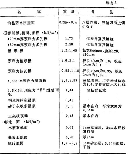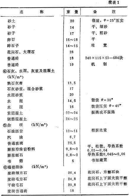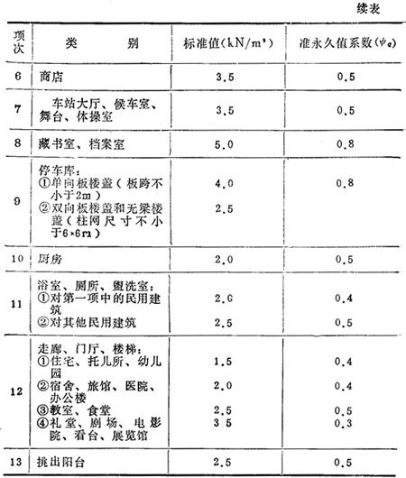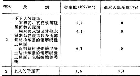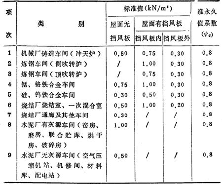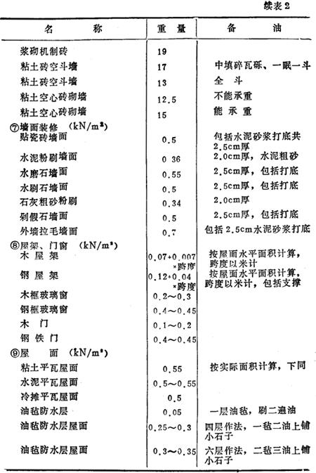 释义 | 建筑结构的荷载 (一)民用建筑楼面均布活荷载 民用建筑楼面均布活荷载的标准值及其准永久值系数按表17-1的规定采用。 表17-1 民用建筑楼面均布活荷载 注:①本表所给各项活荷载适用于一般使用条件,当使用荷载较大时,应按实际情况采用。 ②第9项活荷载只适用于停放轿车的车库,当单向板板跨小于2m时,可将车轮局部荷载换算为等效均布荷载,局布荷载值取4.5kN,间隔1.5m,分布在0.2×0.2m的面积上。 ③第12项楼梯活荷载,对预制楼梯踏步平板,尚应按1.5kN集中荷载验算。 ④第13项挑出阳台活荷载,当人群有可能密集时,宜按3.5kN/m2采用。 ⑤本表各项荷载未包括隔墙自重。 设计楼面梁、墙、柱及基础时,表17-1中的楼面活荷载标准值在下列情况下应乘以规定的折减系数。 1.设计楼面梁时的折减系数 (1)第1项当楼面梁从属面积超过25m2时,取0.9。 (2)第2~8项当楼面梁从属面积超50m2时,取0.9。 (3)第9项对单向板楼盖的次梁和槽形板的纵肋取0.8;对单向板楼盖的主梁取0.6;对双向板楼盖的梁取0.8。 (4)第10~13项采用与所属房屋类别相同的折减系数。 2.设计墙、柱和基础时折减系数 (1)第1项按表17-2采用。 表17-2 活荷载按楼层数的折减系数 注:当楼面梁的从属面积超过25m2时,采用括号内的系数。 (2)第2~8项采用与其楼面梁相同的折减系数。 (3)第9项对单向板楼盖取0.6;对双向板楼盖和无梁楼盖取0.8。 (4)第10~13项采用与所属房屋类别相同的折减系数。 楼面梁的从属面积是指向梁两侧各延伸二分之一梁间距的范围内实际面积。 (二)工业建筑楼面活荷载 (1)工业建筑楼面生产、使用或检修、安装时,由设备、管道、运输工具及可能拆移的隔墙产生的局部荷载,均应按实际情况考虑,可采用等效均布活荷载代替。 (2)工业建筑楼面(包括工作平台)上无设备区域的操作荷载,包括操作人员、一般工具、零星原料和成品的自重,可按均布活荷载考虑,采用2.0kN/m2。 (3)生产车间的楼梯活荷载可按实际情况采用,但不宜小于3.5kN/m2。 (三)屋面均布活荷载 (1)工业与民用房屋的屋面,其水平投影面上的屋面均布活荷载按表17-3采用。 表17-3 屋面均布活荷载 注:①不上人屋面,当施工荷载较大时,应按实际情况采用。 ②上人屋面,当兼作其他用途时,应按相应楼面活荷载采用。 (2)屋面均布活荷载不应与雪荷载同时考虑。 (四)屋面积灰荷载 设计生产中有大量排灰的厂房及其邻近建筑物时,对于具有一定除尘设施和保证清灰制度的机械、冶金、水泥厂的厂房屋面,其水平投影面上的屋面积灰荷载应分别按表17-4和表17-5采用。 表17-4 屋面积灰荷载 注:①表中的积灰均布荷载仅用于屋面坡度α≤25°;当α≥45°时,不考虑积灰荷载;当 ②清灰设施的荷载另行考虑。 ③对1~5项的积灰荷载仅用于距炉烟囱中心20m半径范围内的屋面;当邻近建筑在该范围内时,其积灰荷载对1、4、5项按车间屋面无挡风板的采用,对2、3项按车间屋面挡风板外的采用。 表17-5 高炉邻近建筑的屋面积灰荷载 注:①表17-4中的注①和注②也适用于本表。 ②当邻近建筑屋面离高炉距离为表内中间值时,按插入法取值。 对于屋面上易形成灰堆处,当设计屋面板、檩条时,积灰荷载标准值可按下列规定乘以增大系数: (1)在高低跨处两倍于屋面高差但不大于6.0m的分布宽度内取2.0。 (2)在天沟处不大于3.0m的分布宽度内取1.4。 积灰荷载应与雪荷载或屋面活荷载两者中的较大值同时考虑。 (五)施工和检修荷载及栏杆水平荷载 (1)设计屋面板、檩条、钢筋混凝土挑檐、雨蓬和预制小梁时,尚应按下列施工或检修集中荷载(人和小工具的自重)出现在最不利位置进行验算。 ①屋面板、檩条、钢筋混凝土挑檐和预制小梁0.8kN;②钢筋混凝土雨蓬1.0kN。 应该注意:对于轻型构件或较宽构件,当施工荷载有可能超过上述荷载时,应按实际情况验算,或采用加垫板、支撑等临时设施承受。当计算挑檐、雨蓬强度时,沿板宽每隔1.0m考虑一个集中荷载;在验算雨蓬、挑檐倾覆时,沿板宽每隔2.5~3.0m考虑一个集中荷载。 (2)楼梯、看台、阳台和上人屋面等的栏杆顶部水平荷载,应按下列规定采用: A.住宅、宿舍、办公楼、旅馆、医院、托儿所、幼儿园:0.5kN/m。 B.学校、食堂、剧场、电影院、车站、礼堂、展览馆或体育场:1.0kN/m。 (3)当采用荷载长期效应组合时,可不考虑施工和检修荷载及栏杆水平荷载。 (六)动力系数 (1)建筑结构设计动力计算,在有充分依据时,可将重物或设备的荷载乘以动力系数后按静力计算。 (2)搬运和装卸重物以及车辆起动和刹车的动力系数可采用1.1~1.2,其动力作用只考虑传至楼板和梁。 (七)吊车荷载 1.吊车竖向和水平荷载 (1)吊车竖向荷载的标准值应按有关规定采用吊车的最大轮压或最小轮压。 (2)吊车纵向和横向水平荷载应按下列规定采用: A.吊车纵向水平荷载标准值应按作用在一边轨道上所有刹车轮的最大轮压之和的10%采用;该项荷载的作用点位于刹车轮与轨道的接触点,方向与轨道一致。 B.吊车横向水平荷载标准值应取横行小车重量与额定起重量之和的下列百分数,并乘以重力加速度: a.对于软钩吊车: 当额定起重量不大于10t时,取12%; 当额定起重量为15~20t时,取10%; 当额定起重量不小于75t时,取8%。 b.对于硬钩吊车取20%。 横向水平荷载应等分于桥架的两端,分别由吊车上的车轮平均传至轨顶,方向与轨道垂直,并考虑正反两个方向的刹车情况。 应该注