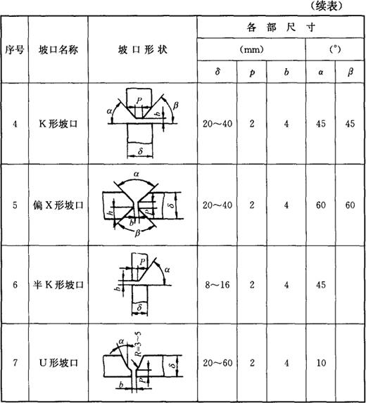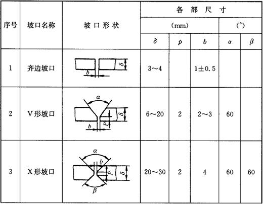 释义 | 开坡口 为了保证焊接质量和强度要求,往往对相互拼接或角焊中的厚板或其他工件的焊接接头处开坡口,坡口的形式与材料的种类、厚度、焊接方法、产品的机械性能等因素有关。选择坡口的形式应考虑以下四个原则:第一,尽量减少焊缝的金属填充量;第二,保证焊透和避免产生裂纹的低合金中、厚钢板或合金钢材,应选用U形坡口;第三,考虑最小的焊接变形,如对中、厚板施焊,应尽量选用对称的坡口形式;第四,坡口便于加工。 1.坡口的形式 一般手工电弧焊常用的坡口形式与尺寸如表6-1。 表6-1 手工电弧焊常用的坡口形式与尺寸 2.开坡口的方法 (1)风铲加工 风铲加工V形或X形坡口时,风铲头的切削角度以50°左右为宜,角度小了强度低,强度大了切削阻力大。为了减小铲削阻力和摩擦,铲头要适当蘸润滑剂。 (2)机械加工 机械加工是在刨边机或铣边机上进行的,它可以刨、铣各种形式的坡口。 (3)气割坡口 气割坡口包括手工气割和半自动气割机切割,其操作方法和使用的工具与气割相同。 (4)碳弧气刨坡口 碳弧气刨是目前已被广泛使用的一种工艺方法,它是利用碳极电弧的高温把金属的局部加热到熔化状态,同时再用压缩空气的气流把这些熔化金属吹掉,达到刨削或切割金属的目的,图6-15是碳弧气刨的示意图。 图6-15 碳弧气刨示意图 1-碳棒;2-刨钳;3-高压空气流;4-工件 |
