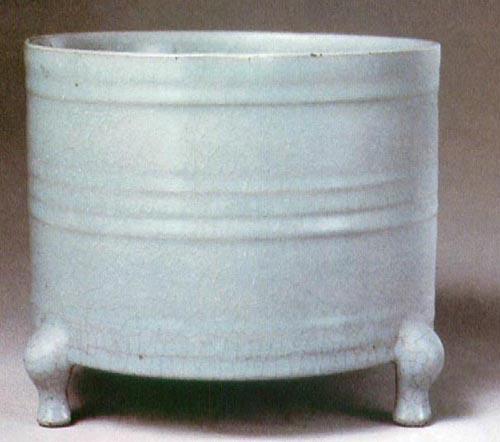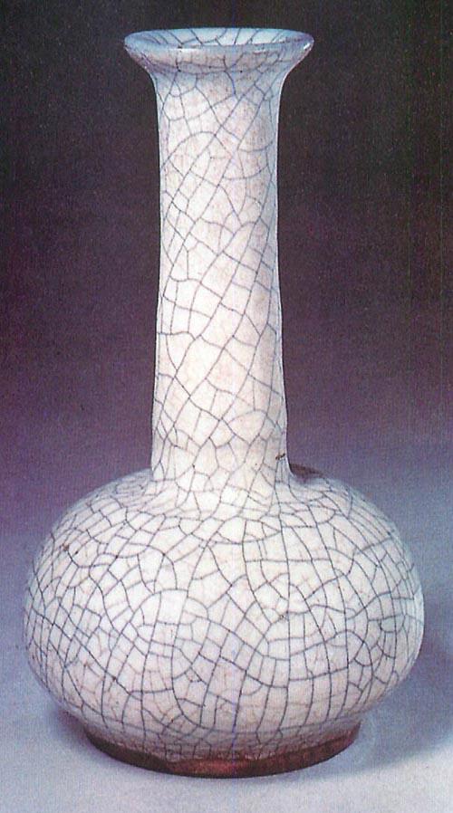 释义 | 开片瓷 也应属青瓷类,之所以单分出来,是因为这类瓷器以自然开片为饰。在烧窑过程中,因胎、釉受热的膨胀系数不一样,在冷却过程中致使釉面开裂,这本来是烧瓷过程中的毛病,但这种缺陷却受到文人士大夫的赏识,视为珍奇,皇家显贵亦如此,工匠们投其所好,掌握了釉面开裂的原理并加以摹仿,渐渐烧出并完善了独特的开片瓷。因此作为一个装饰品种,宋代创烧了开片瓷。当时烧造开片瓷有名的窑厂有汝窑、官窑、哥窑等。 1.汝窑 汝窑的窑址在河南省宝丰县清凉寺。宝丰县宋时隶属汝州,故此得名。汝窑分两大系统,一部分专为宫廷烧造御制瓷;一部分供民需。为便于区分,后世陶瓷学者将民用瓷部分称之为临汝窑。御窑烧造时间极短。北京统治者最初使用定窑瓷器,但因定瓷口无釉(俗称“芒口”),不好用,才命汝窑烧御器进宫,北宋末年汝窑毁于战乱。由于烧造时间只有二十多年,成品很少,但质量极精,南宋时已有“近尤难得”的记载。如今,全世界范围内传世品不足百件,主要是碗、盘、洗、樽(彩版23)、出 23.汝窑三足樽 北宋 2.官窑 北宋官窑至今没有找到窑址,文献记载也很少,只有南宋人顾文荐在《负喧杂录》中提到:“宣政间京师自置窑烧造,名曰官窑”。这里说的“宣政间”指宋徽宗政和到宣和(1111~1125年)15年时间内,“京师”是指当时的京城汴京(今开封)。由于宋朝至今几百年中黄河几次水灾改道,将宋代京城遗址深埋在六米以下的地方,北宋官窑遗址也就无从查找,以上是传统说法。有的学者认为北宋汴京官窑根本不存在,“京师自置窑烧造”的“京师”是指朝廷,朝廷“置窑”不一定在汴京,理由是汴京附近没有制瓷的原料和燃料,不具备设窑的条件,更没有成熟的民窑为基础。因此认为当时“京师自置”的窑应是汝窑。而公认为传世的北京官窑瓷器应是南宋“郊坛下”官窑生产的。这一说法有一定道理,有待于今后考古发现做进一步证实。从故宫博物院所藏传世品看,被认为是北宋官窑的这批瓷器的胎子是紫黑色的,施釉很厚,莹润如堆脂,粉青或天青色,开稀疏的大纹片。施釉后略有流淌,口部等釉薄的地方隐约露出胎色。因此,“紫口”是官窑一大特点;裹足支烧、器底有“芝麻钉”是另一大特点。官窑和汝窑一样,以釉色为美,没有纹饰,立器只有凹下或凸起的弦纹或边楞。器型种类较少,除了盘、葵口洗以外,多仿古青铜器的造型,如长颈瓶、贯耳瓶、贯耳尊、兽耳炉等。 宋室南迁后,在临安(今杭州)建都。据南宋人叶置《坦斋笔衡》中记载:“中兴渡江,有邵成章提举后苑,号邵局,袭故宫遗制,置窑于修内司,造青器名内窑,澄泥为范,极其精致,油(釉)色莹澈、为世所珍,后郊坛下别立新窑,比旧窑大不侔矣。”修内司窑址至今没有找到,郊坛下窑址在杭州市。从已出土的大量瓷片看,南宋官窑瓷器的胎子呈深灰、灰褐、灰黄等色。胎有薄厚两种,即胎厚釉薄的和胎薄釉厚的两种。釉厚的瓷片从断面可看出施釉痕迹,一层层的像维夫饼干。釉子温润似玉,也有比较光亮的。釉色有粉青、天青、灰青等,开比较细碎的纹片。南宋官窑既有裹足支烧的,也有垫烧的,器底大而薄的往往采用支烧与垫烧共用的方法来保证质量。根据计算机判别瓷器产地,证明传世的被认为是北宋官窑的瓷器和南宋郊坛窑出土的瓷片应是同一产地,但目前未见郊坛窑出土此类瓷片的报道。 3.哥窑 因为没有窑址出土资料可以和传世哥窑瓷器相比较,所以迄今为止尚没有找到哥窑窑址。故宫博物院、上海博物馆等大型博物馆所收藏的传世哥瓷的造型都极精细规整,主要是陈设瓷,多仿古铜器形制,如贯耳瓶、菊瓣盘、兽耳炉、弦纹瓶、长颈瓶(彩版24)、立耳三足炉、鼎式炉、五足洗、葵口洗、葵口碗等。哥瓷胎子非常坚密,呈深紫灰色、灰色或土黄色;釉色较多,有粉青、翠青、灰青、米黄等;施釉较薄,温润似玉,器表有一层不很亮的酥油光、并有较大的黑色及较小的黄色开片,俗称“金丝铁线”。哥窑瓷器既有支烧的,也有垫圈烧的。 24.哥窑长颈瓶 宋 哥窑窑址没有找到,宋代文献也不见记载。元《至正直记》中出现“哥哥洞窑”、“哥哥窑”的记载,而明《宣德鼎彝谱》中才有柴、汝、官、哥、钧、定等几大名窑的提法。成书于嘉靖四十年的《浙江通考》记载了:宋时浙江龙泉县有烧窑的兄弟二人、哥哥章生一烧的开片瓷是哥窑,弟弟章生二烧的不开片的青瓷是弟窑,即龙泉窑的传说。因明、清文献中记载浙江龙泉窑的地方很多,因此认为哥窑在龙泉县。考古工作者在浙江龙泉的大窑遗址发现了很多和文献记载哥窑瓷特点类似的黑胎青瓷,认为大窑就是哥窑。但这些瓷片和公认的传世哥窑区别较大。比如:黑胎青瓷具有胎薄釉厚,以里胎为主;釉透明,有玻璃光泽,开片多有颜色;且器物口沿、底足釉薄,透出胎子的颜色,所以有“紫口铁足”的特点。而传世哥瓷胎厚釉薄,胎色种类较多,有沉香色、淡白色、杏黄色、深灰色、黑色等,釉子不明亮,润如玉,有一层酥油光,紫口铁足现象很少。经化验测定,两者胎釉的化学组成不同,得出的结论是:传世哥窑不是龙泉窑所生产的。到底传世哥窑是何处生产的一直是个迷。有的专家认为:“传世哥窑很可能是宋代以后景德镇所烧造的。”有的专家利用微量元素分析归类法得出的结论是:“南宋修内司官窑就是长期以来所称的‘传世哥窑’