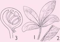 开通植物1.掌状复叶 2.小叶的一部分,示网状脉 3.雌性器官的纵切面
