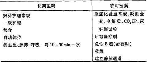 说明:(1)宫外孕一般病情较急,甚至危及生命安全,因此处理应积极,及时建立静脉通道,边抗休克边入手术室手术。