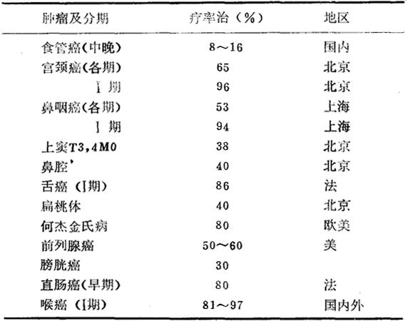 放射治疗已有将近90年的历史。由于放射设备、技术的改进,经验的积累,放疗效果也不断提高,表3-2列出一些常见肿瘤放射治疗的五年存活率,表示放疗已具备有相当高的水平。