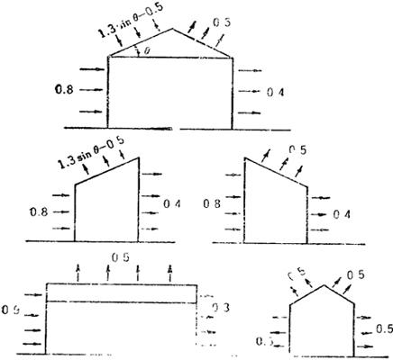 释义 | 强度计算基本公式 3.12.1 风压 风压计算公式如下: 式中 P——风压(kg/m2=mmH2O); q——速度压(kg/m2=mmH2O); h——起自地面的高度(m); ξ——风力系数(-)。 各种建筑物受到的风压如图3-139~图3-142所示。 图3-139 建筑物受到的风压 图3-140 板状建筑物风力系数(ξ) 图3-141 封闭式建筑物风力系数(ξ) 图3-142 烟囱风力系数(ξ) 3.12.2 积雪重量 积雪重量为:当积雪1厘米厚时,1平方米承受2公斤,如图3-143所示。 图3-143 积雪重量示意 3.12.3 地震力度 地震力度见表3-32和图3-144。 表3-32 地震力度表 图3-144 示意图 地震力度计算公式如下: FG=Ci×WG 式中 FG——地震力度; Ci——地震力度剪切系数; WG——计算地震力度部分支撑的重量 (固定重+荷载重+积雪重) Ci=Z·Ri·At·Co 式中 Z——根据地点确定的常数,1.0~0.7(多为1.0); Ri——建筑物振动特性; Ai——表示地震层剪切系数的建筑物高度方向分布数值; Co——标准剪切系数0.2以上,地面不坚固的场所0.3以上。 求Rt时,用下式: T=h(0.02+0.01×a) 式中 T——建筑物固有的周期(s); h——建筑物高度(m); Tc——根据建筑物地基的地质类型确定的数值(s),0.4为岩石、硬质砂土;0.8为腐质土、泥土。 求Ai时,用下式: 3.12.4 钢材的允许应力 钢材的允许应力见表3-33。 表3-33 钢材允许应力表 |