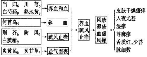【要点】 本方是以四物汤为基础养血和血,加入荆芥、防风等祛风以止痒。中医认为“痒自风来”,故疏风即止痒。