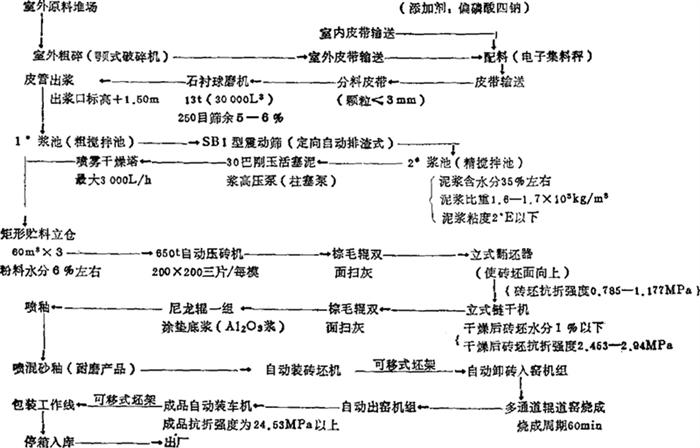 图6-6 国内某彩釉砖引进生产线工艺流程