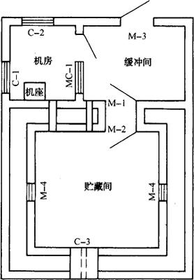 | 释义 | 微型节能冷库库体建造 微型节能冷库由贮藏室、机房和缓冲间三部分组成,土木结构双层墙中间填充保温材料,图3-24为微型节能冷库的平面示意图。