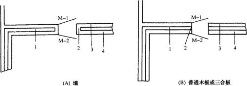 图3-27 墙体承重地面无冷桥结构示意图(左图为外墙承重,右图为内墙承重) 1-水泥砂浆毛面地面 2、4-防潮隔汽层 3-保温材料 5-承压层(依据地质状况优劣取舍) 6-素土夯实 (3)库门。门洞处的保温层结构特别容易被忽视。图3-28为两种设计方法,B为正确,施工时在门洞四周用木板压胶条或海绵钉紧、压实,或者镶一圈50mm厚聚苯乙烯泡沫板,底部做出沟槽装木制脚踏板。