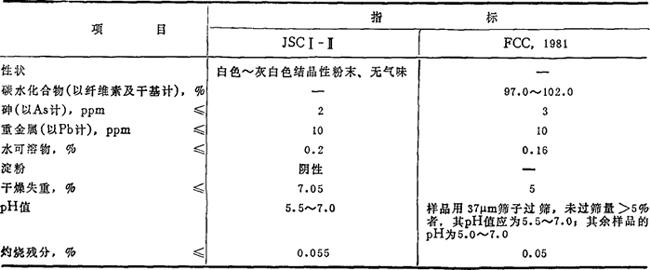 质量规格(JSCⅠ-Ⅱ;FCC,1981)
