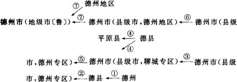 ①1912年称德州;1913年2月改为德县。②1946年析德县城区置德州市,1949年后正式隶德州专区。③1956年德州市(县级市)改隶聊城专区。④1958年撤销德县,一部分并入德州市,一部分并入平原县。⑤1961年德州市(县级市)改隶德州专区。⑥1970年德州专区改名德州地区,德州市(县级市)属之。⑦1994年12月17日,经国务院批准,撤销德州地区和德州市,设立地级德州市(辖原德州地区的陵县、宁津县、庆云县、临邑县、齐河县、平原县、夏津县、武城县,原德州地区的乐陵市、禹城市由省直辖)。