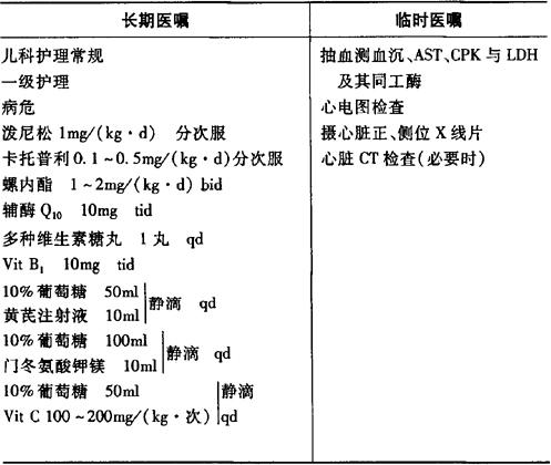 释义 | 心内膜弹力纤维增生症 说明:1.有心力衰竭时可给予地高辛维持量,至症状消失2年以上、X线及心电图恢复正常为止。 2.泼尼松1mg/(kg·d),1~2个月后减量,每2周减1.25~2.5mg,减至2.5~5mg为维持量,至心电图正常,X线检查接近正常始逐渐停药,激素应用时间约持续1~1.5年。 3.卡托普利、螺内酯合用过程中警惕高钾血症。 4.卡托普利初用时偏小量,然后酌情增加。 |