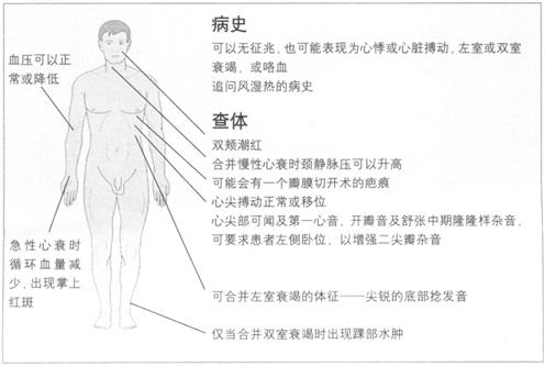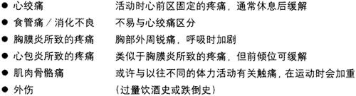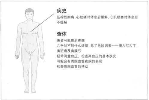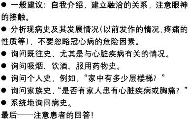 释义 | 心血管疾病的评估及诊断 2.2.1 采集病史 通常对于一般心血管疾病的患者,固定模式的问诊即可对患者做出一定评估。最常见的症状就是胸痛及气短。同时,还可能出现不舒服或担扰的症状。因此,很重要的一点就是要能意识到患者可能会极端焦虑(甚至产生对死亡的恐惧),这可以通过几方面表现出来。 患者可能会比较暴躁、焦虑,或是沉默寡言。而医生的工作就是要有效地处理这些情绪,从而采集到完整的病史。表现得自信、有把握及富有同情心往往比较容易成功。从他们的角度探察及考虑问题。在开始前要让患者放松——记住,眼神的接触对于建立和睦的关系是非常重要的——最后,要仔细聆听患者的回答(至少看上去你正在认真聆听)。 ●切记:以开放式的提问开始询问病史,以鼓励患者更全面地描述症状: “谈谈你的病吧……是怎样开始的呢……怎么不舒服呢?” ●然后逐渐向细节问题过渡,例如: “犯病的时候你正在做什么呢……这种情况持续了多久?” 一般说来,最好能鼓励患者用自己的话描述病情。 1.患者主诉 (1)胸痛 尽管也可以由呼吸系统疾病或骨骼肌肉疾病所致,但仍可认为是心绞痛或心肌梗塞的主要表现。同时,清楚疼痛的性质也是很重要的。心前区疼痛通常被描述为压榨性、沉重感或是“像有带子紧捆在胸前”。询问患者发病时正在进行的活动,例如心绞痛常由活动引起。询问是否存在牵涉痛:心前区疼痛常放射至左臂或双臂或下颌。询问是否有恶心、呕吐及嗳气。估计疼痛持续的时间。 (2)气短 气短症状是心脏病的常见表现,一般于活动时耐力下降及登山时出现气短而被发现。切记要询问患者可以步行多远,然后再提问: ●“在气短前你大概可以走多远?” 气短常于夜间加重。 询问患者是否可以平卧,需要几个枕头,是否曾因气短而于夜间憋醒: ●“你可以平卧吗?…你一般使用几个枕头?…你夜间曾因气短而被憋醒过吗?”… 如果是: ●“你通常会怎么做呢?” 患者一般会觉得需要到窗前呼吸新鲜空气。患者还会有一些与气短相关的心衰的其他症状,因此可以直接询问踝部是否水肿: ●“你注意到你的踝部是否肿了么?” (3)心律不齐 心脏病的患者常有心律不齐,后者往往可以导致晕厥。询问: ●“你曾经有过黑朦吗?……跟我谈一下当时的情况。” 心律不齐常伴随心悸——一种能清楚感觉到自己心跳的感觉。大多数人都能理解这一概念。嘱患者在桌上拍出其感到心悸的心跳,有助于判定心律是否规则及心率的快慢。心脏疾病患者采集病史的重点已列于表7。表8具体描述了胸痛的不同种类。 表7 询问的重点 表8 不同种胸痛的示例 2.病史的其他重点部分 缺血性心脏病的患者还可伴有身体其他部位的血管疾病的症状。其中最常见的是间歇性跛行,行走时腿部抽筋似的疼痛,通常休息后缓解。询问患者在不得不停下休息前可以走多远,这种不适一般持续多久,如何缓解,休息几分钟后自己是否可以继续行走,了解跛行疼痛的具体位置。 (1)既往史 当询问既往史时,应着重强调风湿热,后者很容易导致瓣膜疾病。但是,自从常规运用抗生素治疗咽痛以来,这一情况不再常见,其重要性也逐渐降低。然而,老人及那些在发展中国家成长的人仍有感染的可能。还应该询问高血压、糖尿病病史及以上提及的心血管疾病症状是否曾一过性发作。当然,还要询问以前是否有过胸痛和/或心脏病发作。 (2)个人及社会史 对于心血管系统疾病来说,这一点在病史中尤为重要,它可以让你知道患者的症状对他们生活的影响,还可以帮助你从患者的生活习惯中,找出其患病的诱导因素。 询问他/她是否锻炼身体,在患病前他/她可以进行何种活动。这些可能与主诉有所重复。 这时,你会感到性生活史是很有意义的。患者是否曾有心肌梗死的病史并不重要,但是在某种情况下还是有必要询问的。例如,一名老年男子可能会在性交的过程中心绞痛发作,这也许会影响到他与其性伴侣的关系。 (3)家族史及治疗史 心脏病的家族史是冠心病典型的危险因素,因此确定近亲中是否有胸痛病史或心脏病甚至猝死者是十分必要的。当心肌梗死在整个家族中蔓延时,询问亲属发作的年龄十分重要。 患有心脏病史的病人通常都使用很多药物。如果患者曾服用过甘油三酯,一定要问清用药后是否能缓解疼痛以及起效时间(甘油三酯对缺血性胸痛的起效时间为5min),记录曾用药及剂量以及停药原因等都是很重要的。甚全可以包括吸烟和饮酒的情况,要询问患者是否吸烟,如果答案是否定的,还要问清他/她是否曾吸过烟以及吸烟量,还要问清患者戒烟的原因。询问饮酒史时也要依据以上思路。 表9为心血管疾病病史询问要点。 表9 心血管系统疾病病史采集纲要 2.2.2 查体 为了使心血管系统查体更精确,患者应该彻底放松,检查室不要太冷。首先观察患者的手、胸、颈,测量脉搏、血压,然后按视、触、听的顺序进行检查。 1.一般检查 查体从患者的一般状态开始。 他/她是否有病容,休息时表情自如或气短? 是否存在中心型发绀?测量体温 观察患者的双手。心血管系统检查时要注意周围性发绀,杵状指以及出血点。然后看球结膜以确定是否贫血以及重新检查是否有中央型发绀。 图14 杵状指 2.动脉搏动 触诊桡动脉搏动(如图示15)要确定双腕桡动脉搏动频率、节律、强度相等并处于同一周期,