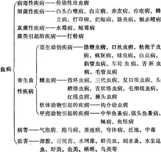 释义 | 怎样诊断鱼病 为了达到积极治疗鱼病的目的,就必须对鱼病迅速作出正确的诊断。为便于掌握诊断知识,这里先介绍鱼病的种类,再介绍鱼发病有什么共同特征,最后再谈谈怎样诊断。 (一)鱼病的种类 从鱼的发病部位来看,不论是鱼种阶段,还是成鱼阶段,都有皮肤病、鳃病、肠道病、其他器官病以及病害、敌害。若从病原体划分则又分病毒性疾病、细菌性疾病、真菌性疾病、藻类引起的疾病、寄生虫性疾病和非寄生性病害、敌害等。现分别列表于后。 (二)鱼发病的共同特征 各种鱼病都有其特殊性,但是鱼生了病还有其共同特征,这主要表现在行动和体色上。一般来说,比较普遍的症状是:在早晨巡塘时,可以发现病鱼离群在塘边浮在水面缓慢独游;亦有的病鱼在塘中拥挤成团,或浮在水面游动显得不安的样子,或间断狂游。病鱼体色一般都发黑;亦有的病鱼体色发白,或部分体表发白等。 (三)诊断方法 目前一般采用肉眼诊断和显微镜诊断两种方法。 1.肉眼诊断:所谓肉眼诊断就是用眼晴直接观察,对于大型寄生虫病等的诊断,都可采用此法。当前常见的病毒病和细菌性疾病,一般亦是依据症状肉眼诊断。 另外,在没有显微镜的情况下,有些鱼病在肉眼不能马上作出正确诊断时,尚可根据鱼类的外表及活动情况进行综合分析而作出诊断。 按鱼病发病部位划分表 按鱼病病原体划分表 现将上述情况概括为三个方面来介绍: (1)首先确定鱼生病部位,根据明显的症状和病原作出诊断:先用肉眼观察是皮肤有病,还是鳃、肠道有病。有很多病在皮肤、鳃、肠道上,用肉眼就可以看到明显的症状或寄生虫,当即可以作出诊断。如鱼体表局部或大部充血、发炎、鳞片脱落则为赤皮病;尾部发白为白皮病;嘴圈发白为白头白嘴病;当年草鱼种肌肉出血则为传染性出血病;体色发黑,鳃丝腐烂发白,尖端软骨外露,鳃上污泥、粘液多为细菌性烂鳃;体表布满白色小点状囊泡为白点病;体表有许多形状、大小都不规则的隆起胞囊则为粘孢子虫病;肉眼在体表看到锚头鱼蚤寄生则为锚头鱼蚤病;肉眼在鳃丝上看到挂着象蝇蛆一样的小虫时为中华鱼蚤病;肉眼在鱼体表看到丛生着很多象旧的棉絮状的丝状体则为水霉病等等(肉眼诊断参考附录一)。 (2)根据症状、鱼体大小、不同季节、本地区鱼病流行情况作出诊断:在夏花鱼种阶段若鱼种发生死亡,也没有发现明显症状,仅病鱼离群缓慢独游,体色发黑,鳃丝粘液增多,颜色与正常鳃丝有所不同,有的呈鲜红色,有的呈淡红色,基本上就可以诊断为原生动物鳃病,这样泼洒硫酸铜和硫酸亚铁合剂,或单泼硫酸铜就能治愈,因为夏花鱼种特别是在5、6月份最易患原生动物鳃病,而原生动物鳃病和草鱼细菌性烂鳃病明显不同的是鳃丝不腐烂,而且象指环虫鳃病和细菌性烂鳃病的流行季节要靠后一些。 关于鳃霉病,在两广地区可以根据症状、季节、水质、鱼的种类、鱼体大小进行诊断。 另外鱼种在初冬到春末,水温在15-25℃的情况下,可以生白点病,每年7、8月份草鱼种经常发传染性出血病,这就可以作为进一步诊断白点病和出血病的根据。 (3)根据中间宿主、寄生虫的来源作出诊断:如复口吸虫病和钩介幼虫病的诊断,可以根据鱼塘中有没有椎实螺,有没有河蚌,再结合症状进行诊断。若鱼塘椎实螺多,没有河蚌,鱼眼充血或突出,或掉一只眼,一般是复口吸虫病,若发现眼晴浑浊就更加无疑了;若病鱼头部充血,鱼塘河蚌多,没有椎实螺,仔细观察又发现鱼的嘴、鳍或鳃上有米色小点,就是钩介幼虫病。 2.显微镜诊断(简称镜检):显微镜诊断目前常用于原生动物等小型寄生虫疾病的确诊和其他疾病的辅助诊断。一般用3-5尾病鱼或刚死尚未腐烂变质的病鱼作检查对象。镜检部位按下列次序进行。 (1)体表:寄生在体表的小型寄生虫种类很多,有车轮虫、斜管虫、口丝虫、钩介幼虫等,用显微镜直接观察体表,或刮下体表粘液放在载玻片上镜检可以看到。若将生白点病的鱼体体表上的白点进行镜检可看到小瓜虫,粘孢子虫胞囊内可看到粘孢子虫。 (2)鳃:寄生在鳃部的小型寄生虫有车轮虫、隐鞭虫、斜管虫、口丝虫、舌杯虫、指环虫、钩介幼虫等,用镊子取一小部分鳃丝与粘液放载玻片上可看到。 (3)肠道:青鱼是否生了球虫病,用镊子取一点前肠肠壁粘液放在载玻片上检查,若找到艾美虫即可作出诊断。 (4)眼:将整个眼球或水晶体压在载玻片上镜检,若在水晶体或玻璃体内找到复口吸虫囊蚴,则为复口吸虫病。 (5)脑等:若鱼患疯狂病,打开脑腔,通过镜检,在脑、拟淋巴液、脊髓、脑神经处可找到营养体,将胞囊压碎可看到孢子。这样就可以确诊。 这里应该指出,镜检要在肉眼检查的基础上进行,可以从重点检查、必须检查的部位开始,遇到疑难情况时,再按体表、鳃、肠、眼等部位顺序进行镜检。 鱼生病经常是几种病并发,若发现几种病并发时,应找出主次矛盾,顺次进行治疗。 鱼死亡有时不是病引起,可能是农药或污水中毒,这就需要根据情况,进行综合分析,最后确诊。 近几年我国病毒性鱼病研究有很大进展,特别是草鱼出血病病原鱼呼肠孤病毒(FRV)的分离,必然会促进病毒病诊断方法的建立,我国陆续建立的草鱼出血病病毒敏感细胞株(系),就为我国草鱼出血病的诊断提供了重要手段。 关于鱼类微生物疾病的诊断,应该在肉眼检查的基础上,同时进行病原的分离和血清学试验,病毒
