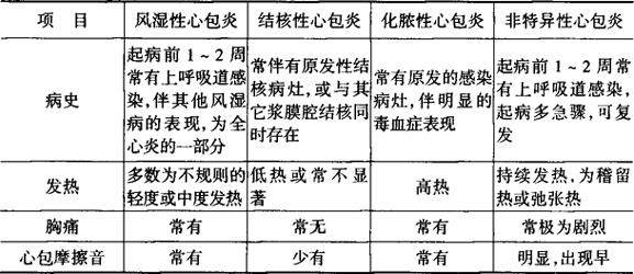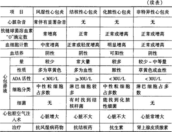 释义 | 急性心包炎 心包炎是最常见的心包病变,可由多种致病因素引起,常是全身疾病的一部分,或由邻近组织病变蔓延而来。心包炎可与心脏的其他结构如心肌或心内膜等的炎症同时存在,亦可单独存在。心包炎可分为急性和慢性两种,前者常伴有心包渗液,后者常引起心包缩窄。急性心包炎是心包膜的脏层和壁层的急性炎症,可以同时合并心肌炎和心内膜炎,也可以作为惟一的心脏病损而出现。 【病因】 急性心包炎几乎都是继发性的,病因实质上是各种原发的内外科疾病,部分病因至今不明。其中以非特异性、结核性、化脓性和风湿性心包炎较常见。急性心包炎的病因分类如下: 1.非特异性心包炎。 2.感染性心包炎 (1)细菌性:①化脓性;②结核性。 (2)病毒性:如柯萨奇、埃可、流感、传染性单核细胞增多症和巨细胞病毒等。 (3)真菌性:如组织胞浆菌、放线菌,奴卡氏菌、耳笰状菌、分枝杆菌等。 (4)其他:如立克次体、螺旋体、支原体、肺吸虫、阿米巴原虫和包囊虫等。 3.伴有其他器官或组织系统疾病的心包炎 (1)自身免疫性疾病:如风湿热、类风湿性关节炎、系统性红斑狼疮、皮肌炎、硬皮病、多关节炎、心包切开术后综合征、心肌梗死后综合征、透析治疗、肾移植和艾滋病等。 (2)过敏性疾病:如血清病、过敏性肉芽肿和过敏性肺炎等。 (3)邻近器官的疾病:如心肌梗死、夹层动脉瘤、肺栓塞、胸膜、肺和食管疾病等。 (4)内分泌代谢性疾病:如尿毒症、黏液性水肿、糖尿病、痛风、阿钬森病、胆固醇性心包炎等。 (5)其他:如胰腺炎、地中海贫血、肠源性脂肪代谢障碍、非淋病性关节炎,结膜、尿道炎综合征等。 4.物理因素引起的心包炎 (1)创伤:如穿透伤、异物、心导管、人工心脏起搏器和心脏按压等的创伤。 (2)放射线。 5.药物引起的心包炎:如肼苯哒嗪、普鲁卡因酰胺、苯妥英钠、青霉素、异烟肼、保泰松和甲基硫氧嘧啶等。 6.新生物引起的心包炎 (1)原发性:间皮瘤、肉瘤等。 (2)继发性:肺或乳腺癌、多发性骨髓瘤、白血病和淋巴瘤等转移。 【临床表现】 1.症状:可能为原发性疾病如感染时的发冷、发热、出汗、乏力等症状所掩盖。心包炎本身的症状有: (1)心前区疼痛:主要见于炎症变化的纤维蛋白渗出阶段。心包的脏层和壁层内表面无痛觉神经,在第五或第六肋间水平以下的壁层外表面有膈神经的痛觉纤维分布,因此当病变蔓延到这部分心包或附近的胸膜、纵隔或膈时,才出现疼痛。心前区疼痛常于体位改变、深呼吸、咳嗽、吞咽、卧位尤其当抬腿或左侧卧位时加剧,坐位或前倾位时减轻。疼痛通常局限于胸骨下或心前区,常放射到左肩、背部、颈部或上腹部,偶向下颌,左前臂和手放射。右侧斜方肌嵴的疼痛系心包炎的特有症状,但不常见。有的心包炎疼痛较明显,如急性非特异性心包炎;有的则轻微或完全无痛,如结核性和尿毒症性心包炎。 (2)心脏压塞的症状:可出现呼吸困难、面色苍白、烦躁不安、紫绀、乏力、上腹部疼痛、浮肿,甚至休克。 (3)心包积液对邻近器官压迫的症状:肺、气管、支气管和大血管受压迫引起肺淤血,肺活量减少,通气受限制,加重呼吸困难,使呼吸浅而速。患者常自动采取前卧坐位,使心包渗液向下及向前移位,以减轻压迫症状。气管受压可产生咳嗽和声音嘶哑。食管受压可出现咽下困难症状。 (4)全身症状:心包炎本身亦可引起发冷、发热、心悸、出汗、乏力等症状,与原发疾病的症状常难以区分。 2.体征 (1)心包摩擦音:是急性纤维蛋白性心包炎的典型体征。因发炎而变得粗糙的壁层与脏层心包在心脏活动时相互摩擦产生的声音,呈抓刮样粗糙的高频声音;往往盖过心音且有较心音更贴近耳朵的感觉。它在心前区均可听到,但在胸骨左缘第三、四肋间、胸骨下部和剑突附近最清楚。其强度常受呼吸和体位的影响,深吸气、身体前倾或让患者取俯卧位,并将听诊器的胸件紧压胸壁时摩擦音增强。常仅出现数小时,或持续数天、数星期不等。当渗液出现两层心包完全分开时,心包摩擦音消失;如两层心包有部分粘连,虽有大量心包积液,有时仍可闻及摩擦音。在心前区听得心包摩擦音,就可作出心包炎的诊断。 (2)心包积液:积液量在200~300ml以上或渗液迅速积聚时产生以下体征: ①心脏体征:心尖搏动减弱、消失或出现于心浊音界左缘内侧处。心浊音界向两侧扩大、相对浊音区消失,患者由坐位转变为卧位时第二、三肋间的心浊音界增宽。心音轻而远,心率快。少数患者在胸骨左缘第三、四肋间可听得舒张早期额外者(心包叩击音),此音在第二心音后0.1秒左右,声音较响,呈拍击样,是由于心室舒张时受心包积液的限制,血流突然中止,形成旋涡和冲击心室壁产生振动所致。 ②左肺受压迫的征象:有大量心包渗液时,心脏向后移位,压迫左侧肺部,可引起左肺下叶不张。左肩胛肩下常有浊音区,语颤增强,并可听到支气管呼吸音(E wart征)。 ③心脏压塞的征象:快速心包积液,即使仅100ml,可引起急性心脏压塞,出现明显的心动过速,如心排血量显着下降,可产生休克。当渗液积聚较慢时,除心率加速外,静脉压显着升高,可产生颈静脉怒张,搏动和吸气时扩张,肝肿大伴触痛,腹水,皮下水肿和肝-颈静脉反流征阳性等体循环淤血表现。动脉较收缩压降低,脉压减小,脉搏细弱,可出现奇脉。 【辅助检查】 1.心电图检查:急性心包炎因累及心包脏层下